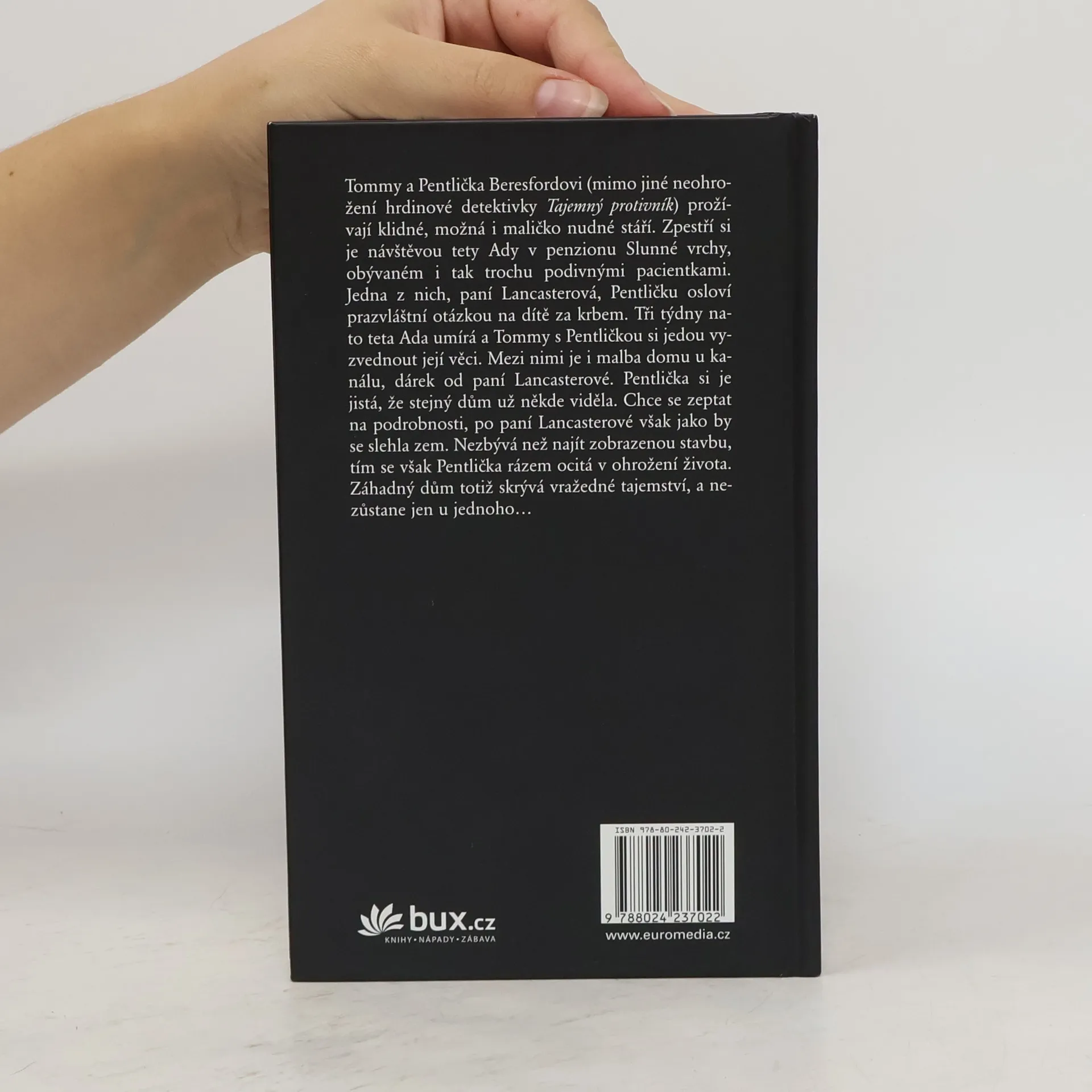Tommy a Pentlička Beresfordovi (mimo jiné neohrožení hrdinové detektivky Tajemný protivník) si zpestří své maličko nudné stáří návštěvou tety Ady v penzionu Slunné vrchy. Jedna z jeho obyvatelek, paní Lancasterová, osloví Pentličku prazvláštní otázkou na dítě za krbem. Tři týdny nato teta Ada umírá. Tommy s Pentličkou najdou mezi jejími věcmi malbu domu u kanálu, dárek od paní Lancasterové. Pentlička si je jistá, že stejný dům už někde viděla. Chce se zeptat na podrobnosti, po paní Lancasterové však jako by se slehla zem. Nezbývá než najít zobrazenou stavbu, tím se však Pentlička rázem ocitá v ohrožení života.