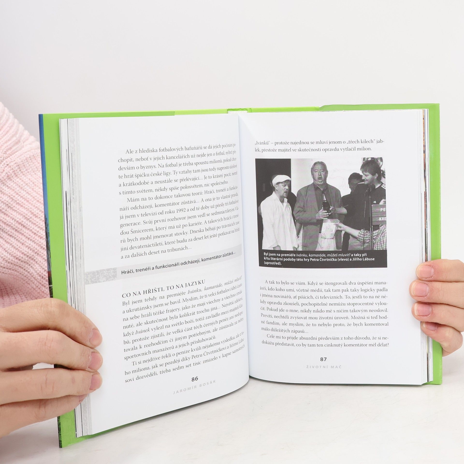 Jaromír Bosák, novinář a jeden z nejpopulárnější sportovních komentátorů u nás, otevřeně hovoří o fotbalu, golfu, komentování, sportu a životě. Knížka je nabitá vtipnými glosami, přesnými postřehy a zásadními postoji i k ožehavým tématům, informační hodnotu zvyšují průlety mistrovstvími světa ve fotbale a olympijskými hrami. Kořením jsou fiktivní rozhovory reportéra s trenéry, jak by vypadat neměly.