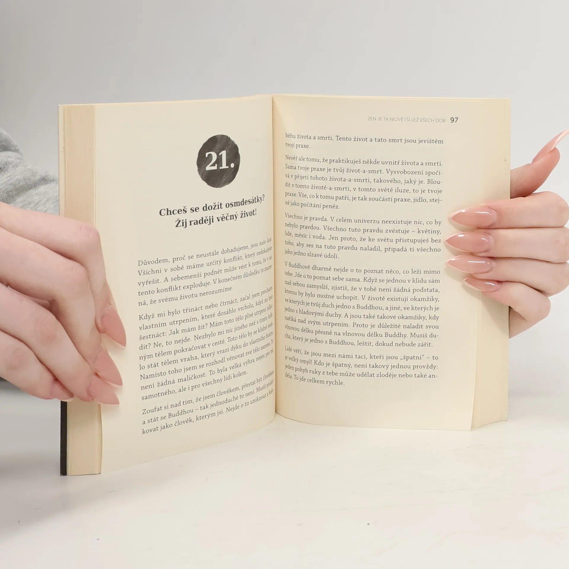 Chcete vědět, co je zen? Přečtěte si tuto vzácnou knihu. Pokud po jejím přečtení nic nepochopíte, zkuste ji znovu. Možná vás inspiruje k tomu, abyste se posadili a v klidu dýchali. V 60. letech dorazila na Západ vlna zenového buddhismu, především díky překladům autorů jako D. T. Suzuki. Zen se stal populárním a jeho estetika pronikla do designu a interiérů. Od té doby uplynulo 60 let a módní vlny orientální duchovnosti se měnily. Sawakiho kniha nám připomíná, co je na zenu přitažlivé: je přímočarý a jde „rovnou na věc“, což západní člověk, přetížený myšlenkami, hledá. Sawaki, významný zenový učitel linie Sótó, žil mezi lety 1880 a 1965 a byl známý nejen zasvěcencům, ale i široké veřejnosti díky svému charismatu a šíření zazenu. Důraz kladl na intenzivní praxi prostého sezení, což vedlo k zavedení týdenních „seššinů“ v jeho klášteře Antaidži, kde se denně konalo čtrnáct padesátiminutových zazenů. Jeho promluvy k žákům byly zapisovány a daly vzniknout japonskému originálu této knihy. Kvalitní literatura o zen-buddhismu je vzácná, zejména v češtině. Věříme, že vás živý a osobitý text Kódó Sawakiho zaujme a inspiruje.
