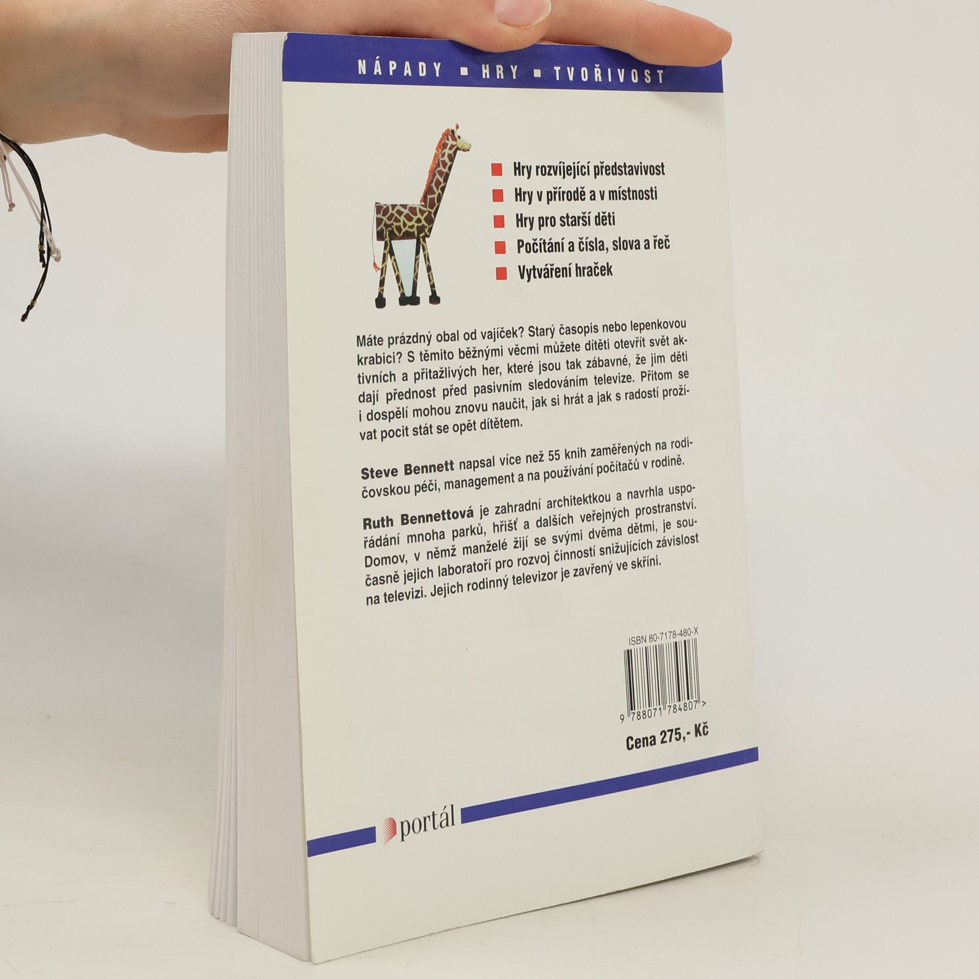 Hry rozvíjející představivost Hry v přírodě a v místnosti Nechte děti vyřádit Hry pro starší děti Počítání a čísla Slova a řeč Výroba hraček Potraviny a co s nimi Máte prázdný obal od vajíček? Starý časopis? Papírovou trubičku od toaletního papíru nebo lepenkovou krabici? S těmito běžnými věcmi můžete svému dítěti otevřít svět aktivních a přitažlivých her, které jsou tak zábavné, že jim děti dají přednost před pasivním sledováním televize. Přitom se i dospělí mohou znovu naučit, jak si hrát a jak s radostí prožívat nádherný pocit stát se opět dítětem.