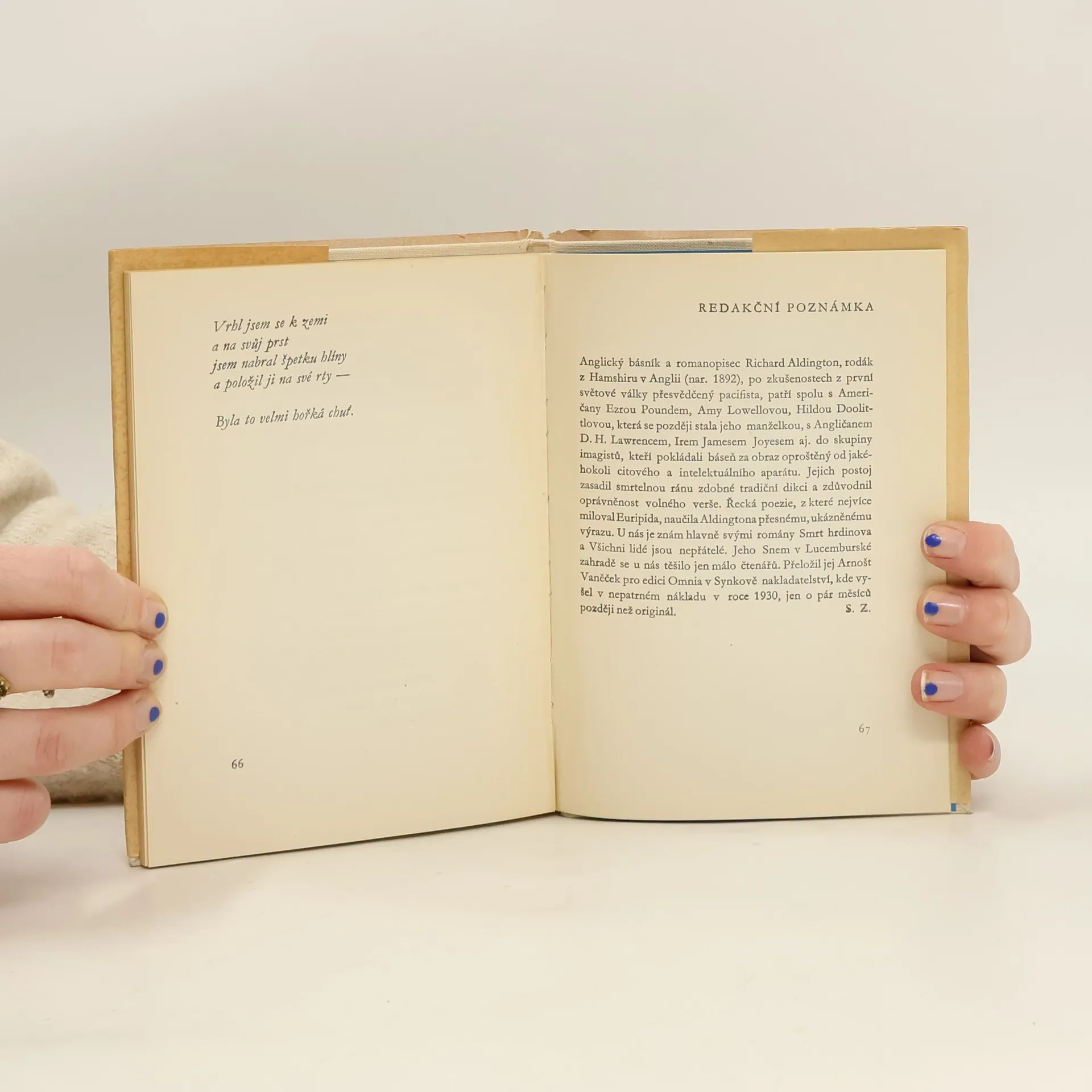 Nové vydání milostné básně anglického básníka a romanopisce (1892–1962), patřícího do tzv. skupiny imagistů a známého u nás hlavně romány Zemřel hrdina a Všichni lidé jsou nepřátelé. Báseň vznikla jako nepomíjející ozvěna autorova citového vztahu a trpkých zkušeností z první světové války. 2. vyd.