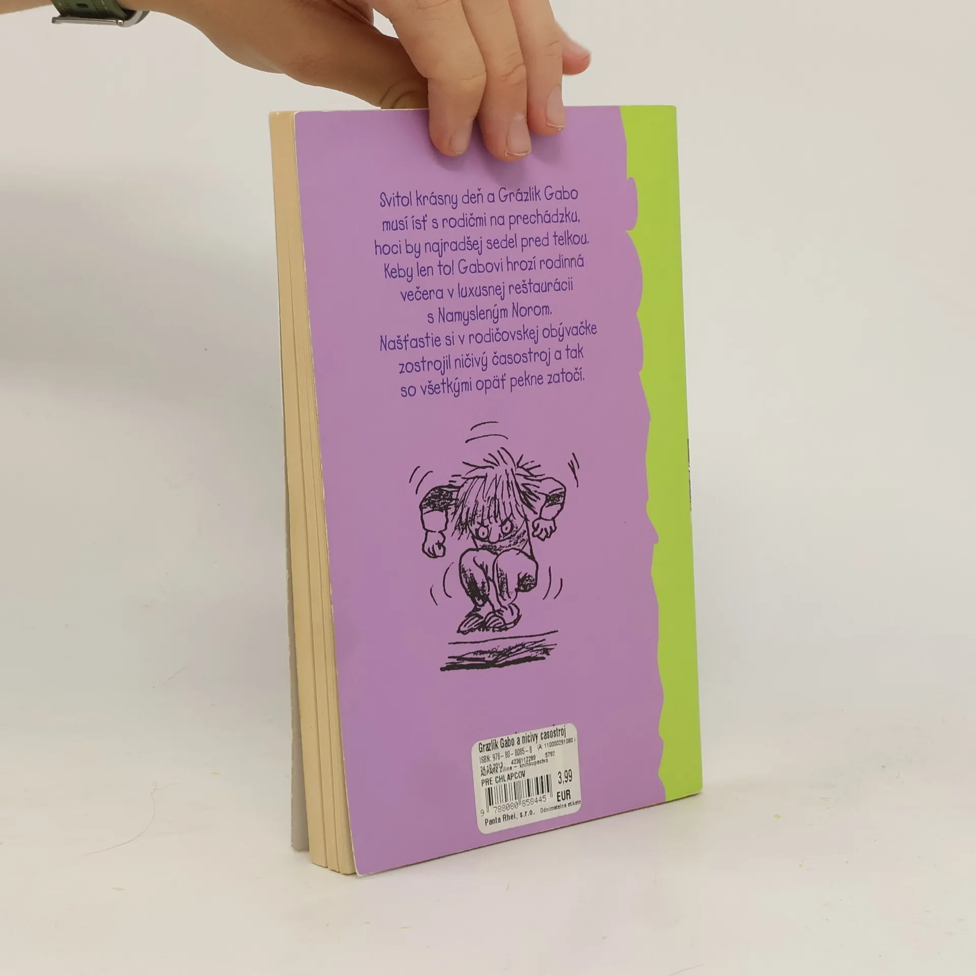 Svitol krásny slnečný deň a Grázlik Gabo musí ísť s rodičmi na prechádzku, hoci by najradšej sedel pred telkou. Keby len to! Gabovi hrozí rodinná večera v luxusnej francúzskej reštaurácií s horenosom Namysleným Norom, navyše veľa nechýbalo a bol by obeťou krutej pomsty svojho mladšieho brata. Našťastie si v rodičovskej obývačke zostrojil ničivý časostroj, a tak so všetkými opäť pekne zatočí. Dvanáste pokračovanie príbehov o Grázlikovi Gabovi, zábavné čítanie pre deti aj dospelákov.