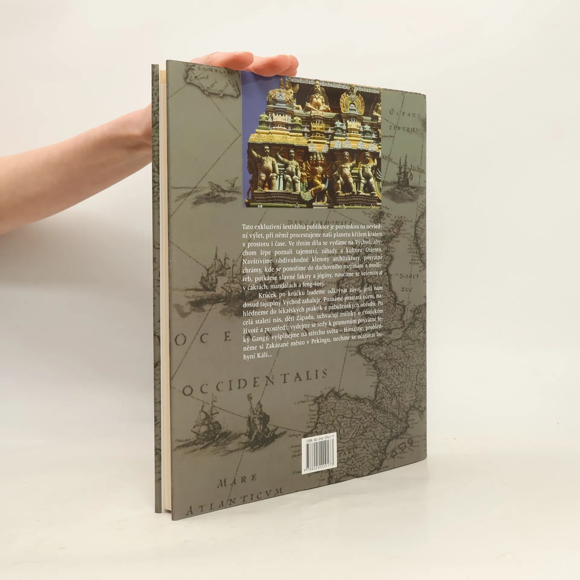 Tato exkluzivní pětidílná publikace je pozvánkou na nevšední výlet, při němž procestujeme naši planetu křížem krážem v prostoru i čase. Ve třetím dílu se vydáme na Východ, abychom lépe poznali tajemství, záhady a kulturu Orientu. Navštívíme obdivuhodné klenoty architektury, posvátné chrámy, kde se ponoříme do duchovního rozjímání a modliteb, potkáme slavné fakíry a jogíny, naučíme se orientovat v čakrách, mandalách a feng-šuej. Krůček po krůčku budeme odkrývat závoj, jenž nám dosud tajuplný Východ zahaluje. Poznáme prastará učení, nahlédneme do lékařských praktik a náboženských obřadů. Po celá staletí nás, děti Západu, uchvacují zmínky o exotickém životě a prostředí; vydejme se tedy k pramenům posvátné řeky Gangy, vyšplhejme na střechu světa -- Himálaje, prohlídněme si Zakázané město v Pekingu, nechme se očarovat bohyní Kálí...