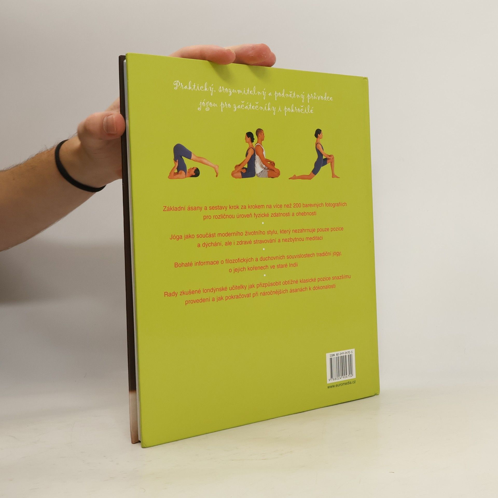 Kniha je bohatě ilustrovaným praktickým průvodcem moderním pojetím jógy, která pomáhá uvolnit potlačovaný stres - důsledek dnešního hektického života. Klade důraz na fyzickou pohodu; nenutí cvičence do pozic přes napětí, nýbrž vychází z individuálních schopností každého jednotlivce. Spojuje jógu s přijatelným životním stylem, zvlášť pokud jde o stravování a meditaci. Více než 200 barevných fotografií provede čtenáře základními ásanami (pozicemi) a sestavami. Autorka předkládá pokyny srozumitelně a jasně. V modrých rámečcích radí začátečníkům, jak si upravit klasické pozice, aby se daly snáze provádět, pokročilejším cvičencům ukazuje, jak rozvíjet své schopnosti při náročnějších ásanách. Knihu doplňují informace o fyzických, filozofických a duchovních souvislostech tradiční jógy a jejích kořenech ve starobylé Indii. Specifická témata zahrnují různé druhy jógy, spolupráci s učitelem, jak začít s domácí praxí, jógu s partnerem, jak se naučit meditovat. Bez ohledu na váš životní styl, víru či úroveň fyzické zdatnosti vás kniha dovede k vnitřnímu i okolnímu klidu.