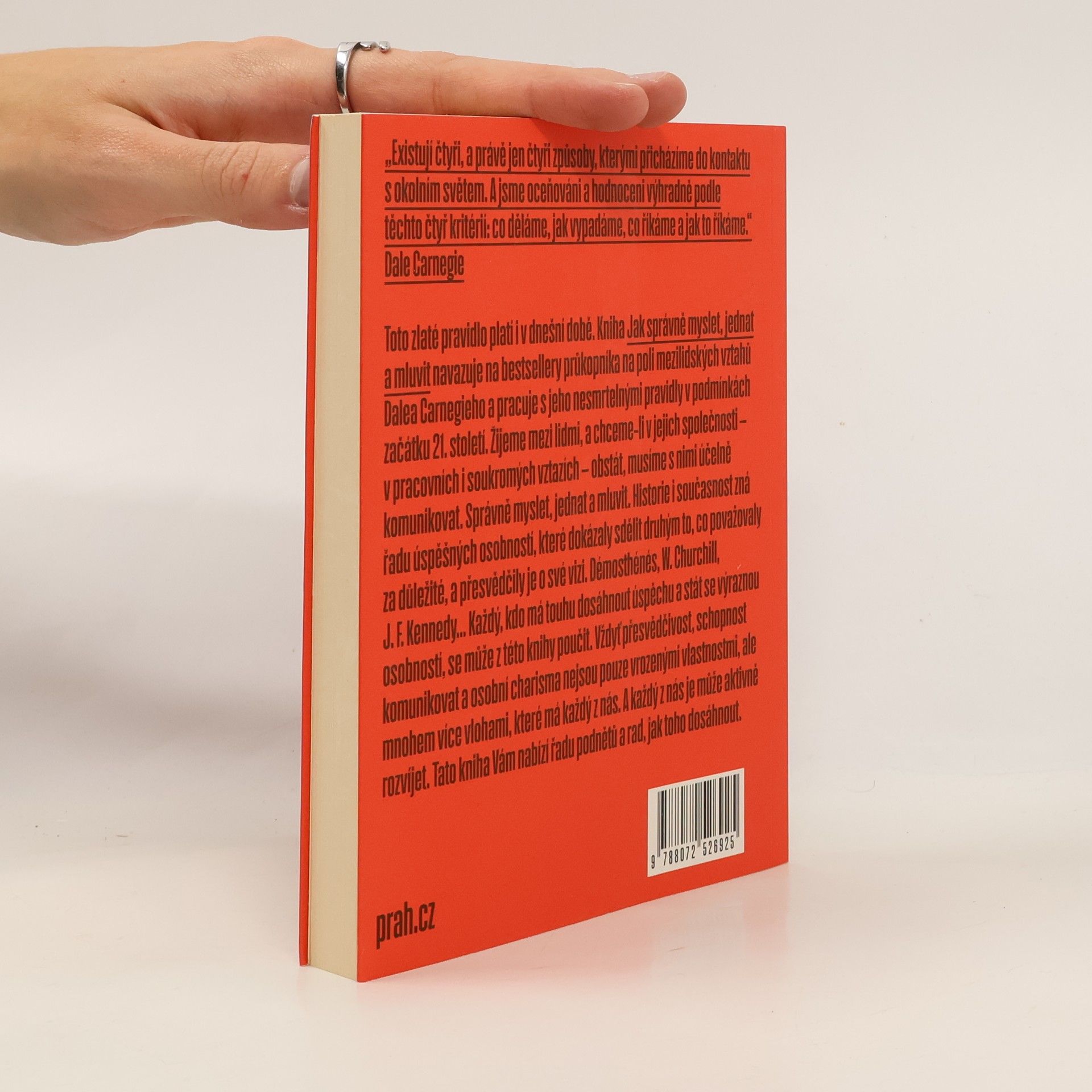 Kniha Jak správně myslet, jednat a mluvit navazuje na bestsellery průkopníka na poli mezilidských vztahů Dalea Carnegieho a pracuje s jeho nesmrtelnými pravidly v podmínkách začátku 21. století. Žijeme mezi lidmi, a chceme-li v jejich společnosti – v pracovních i soukromých vztazích – obstát, musíme s nimi účelně komunikovat. Správně myslet, jednat a mluvit. Historie i současnost zná řadu úspěšných osobností, které dokázaly sdělit druhým to, co považovaly za důležité, a přesvědčily je o své vizi. Démosthénés, W. Churchill, J. F. Kennedy… . Každý, kdo má touhu dosáhnout úspěchu a stát se výraznou osobností, se může z této knihy poučit. Vždyť přesvědčivost, schopnost komunikovat a osobní charisma nejsou pouze vrozenými vlastnostmi, ale mnohem více vlohami, které má každý z nás. A každý z nás je může aktivně rozvíjet. Tato kniha Vám nabízí řadu podnětů a rad, jak toho dosáhnout.