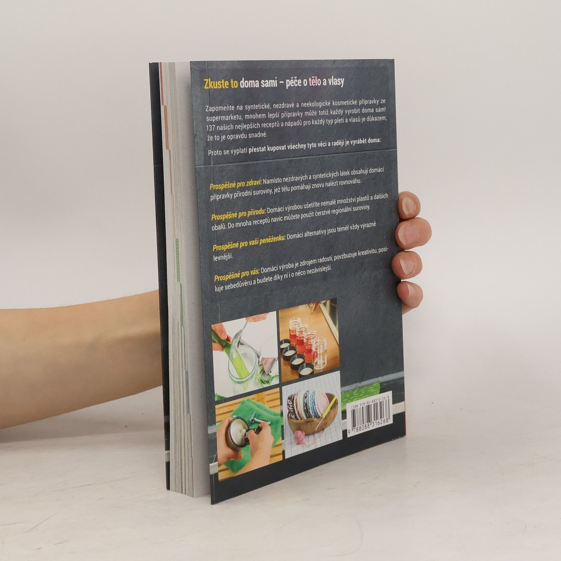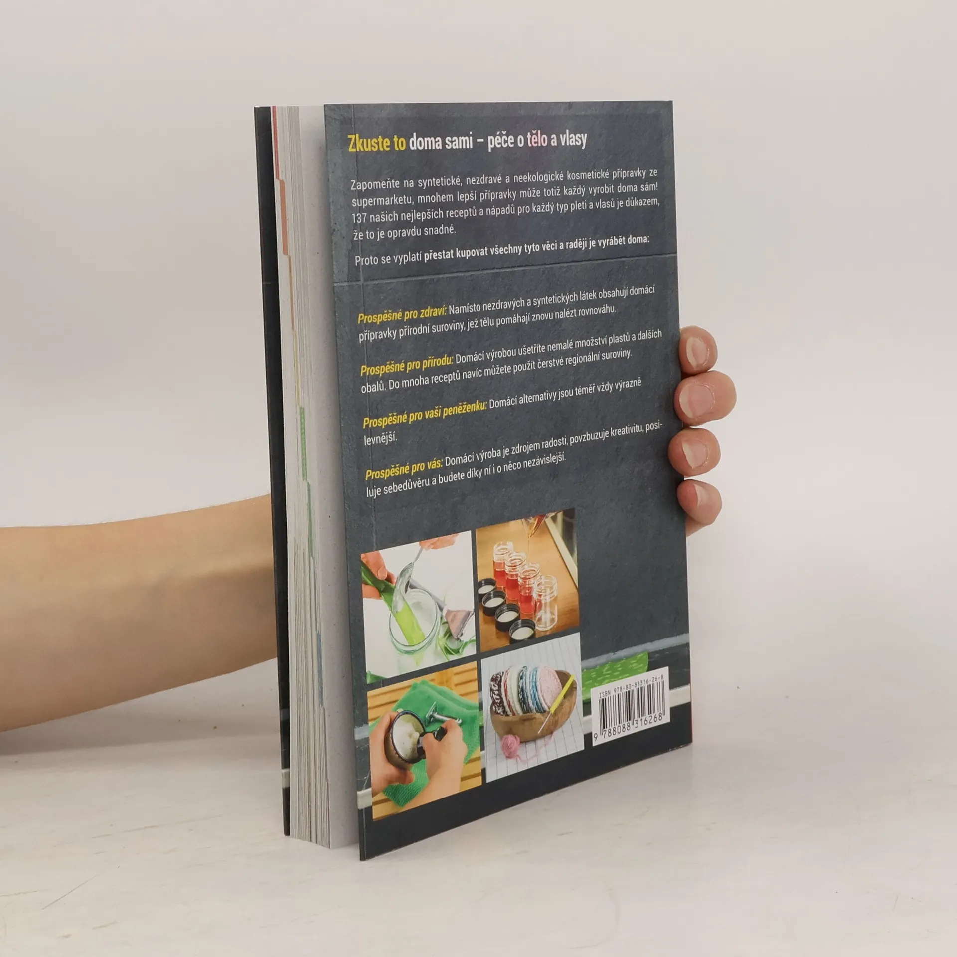 Zapomeňte na syntetické a nezdravé kosmetické přípravky ze supermarketu, protože mnohem lepší alternativy si můžete vyrobit doma! 137 receptů a nápadů pro různé typy pleti a vlasů dokazuje, že to je snadné. Domácí přípravky jsou prospěšné pro zdraví, neboť obsahují přírodní suroviny, které tělu pomáhají nalézt rovnováhu. Tímto způsobem také šetříte přírodu, protože domácí výrobou snižujete množství plastů a obalů, a můžete využít čerstvé regionální suroviny. Navíc jsou domácí alternativy většinou výrazně levnější, což je výhodné pro vaši peněženku. Výroba kosmetiky doma je také zdrojem radosti, podporuje kreativitu, posiluje sebedůvěru a zvyšuje nezávislost. V drogeriích najdete regály plné speciálních produktů, ale většina z nich obsahuje syntetické látky, které mohou vyvolávat alergie, rakovinu a další onemocnění. Tyto hotové výrobky přispívají k obrovskému množství obalového odpadu. Většinu těchto přípravků lze snadno nahradit domácími, udržitelnými alternativami. Pomocí zdravých, často jedlých přísad si můžete rychle vyrobit šampon, zubní pastu, masti, deodorant a další. Nechte se inspirovat a zlepšete svůj život!