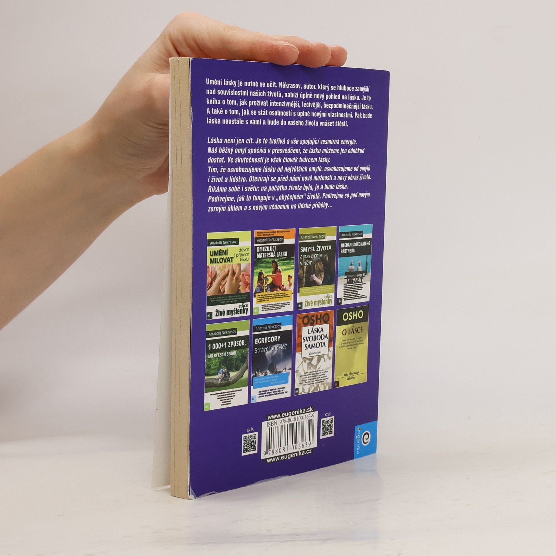 Umění lásky je nutné se učit. Někrasov, autor, který se hluboce zamýšlí nad souvislostmi našich životů, nabízí úplně nový pohled na lásku. Je to kniha o tom, jak prožívat intenzivnější, léčivější, bezpodmínečnější lásku. A také o tom, jak se tak stát osobností s úplně novými vlastnostmi. Pak bude láska neustále s vámi a bude do vašeho života vnášet štěstí. Láska není jen cit. Je to tvořivá a vše spojující vesmírná energie. Náš běžný omyl spočívá v přesvědčení, že lásku můžeme jen odněkud dostat. Ve skutečnosti je však člověk tvůrcem lásky. Tím, že osvobozujeme lásku od největších omylů, osvobozujeme od omylů i život a lidstvo. Otevírají se před námi nové možnosti a nový obraz života. Říkáme sobě i světu: na počátku života byla, je a bude láska. Podívejme se, jak to funguje v „obyčejném“ životě. Podívejme se pod novým zorným úhlem a s novým vědomím na lidské příběhy…