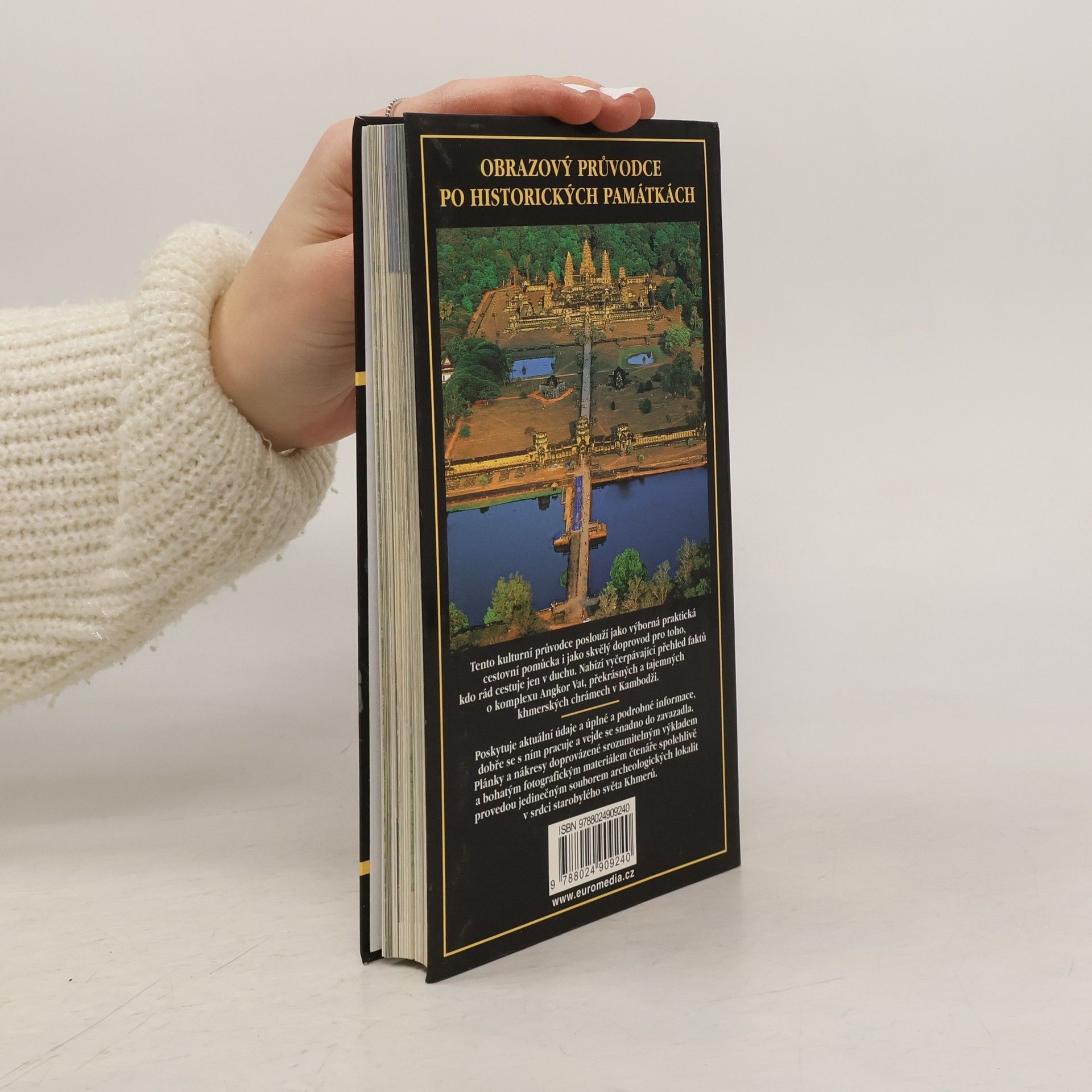 Průvodce starověkým hlavním městem říše Khmerů (9.-13.století), které je dnes vekým archeologickým parkem, nabízí aktuální obraz historických míst, uměleckých krás angkorských chrámů, vodních ploch a khmerského umění. Pro porozumění kultuře a umění khmerské civilizace je vždy popis památek zasazen do historického a kulturněhistorického kontextu. Průvodce chronologicky sleduje všechny éry Angoru a věnuje pozornost popisu a ikonografii khmerského chrámu, umění reliéfu, hinduistickým božstvům a archeologickému průzkumu Angkoru. Prohlídkové trasy sledují chronologii a vývoj hlavních typů svatyň (ranné období, vrcholné období reliéfu, královské stavby, srdce Angkoru, dědictví Khmerů) a uvádí i trasy za hranicemi Archeologického parku. Texty ilustrují barevné fotografie a plánky, nechybí slovníček, bibliografie a rejstřík.
