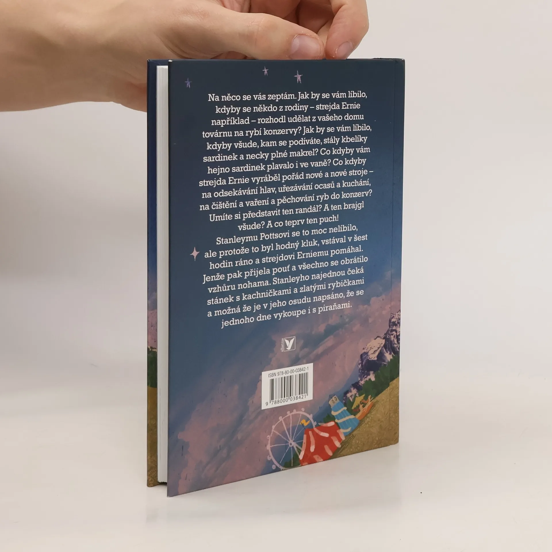 Poetický a laskavě bláznivý příběh o překonání vlastního strachu Na něco se vás zeptám. Jak by se vám líbilo, kdyby se někdo z rodiny – strejda Ernie například – rozhodl udělat z vašeho domu továrnu na rybí konzervy? Jak by se vám líbilo, kdyby všude, kam se podíváte, stály kbelíky sardinek a necky plné makrel? Co kdyby vám hejno sardinek plavalo i ve vane? Co kdyby strejda Ernie vyráběl pořád nové a nové stroje – na odsekávání hlav, uřezávání ocasu a kuchání, na čištění a vaření a pechování ryb do konzerv? Umíte si představit ten randál? A ten brajgl všude? A co teprv ten puch! Stanleymu Pottsovi se to moc nelíbilo, ale protože to byl hodný kluk, vstával v šest hodin ráno a strejdovi Erniemu pomáhal.