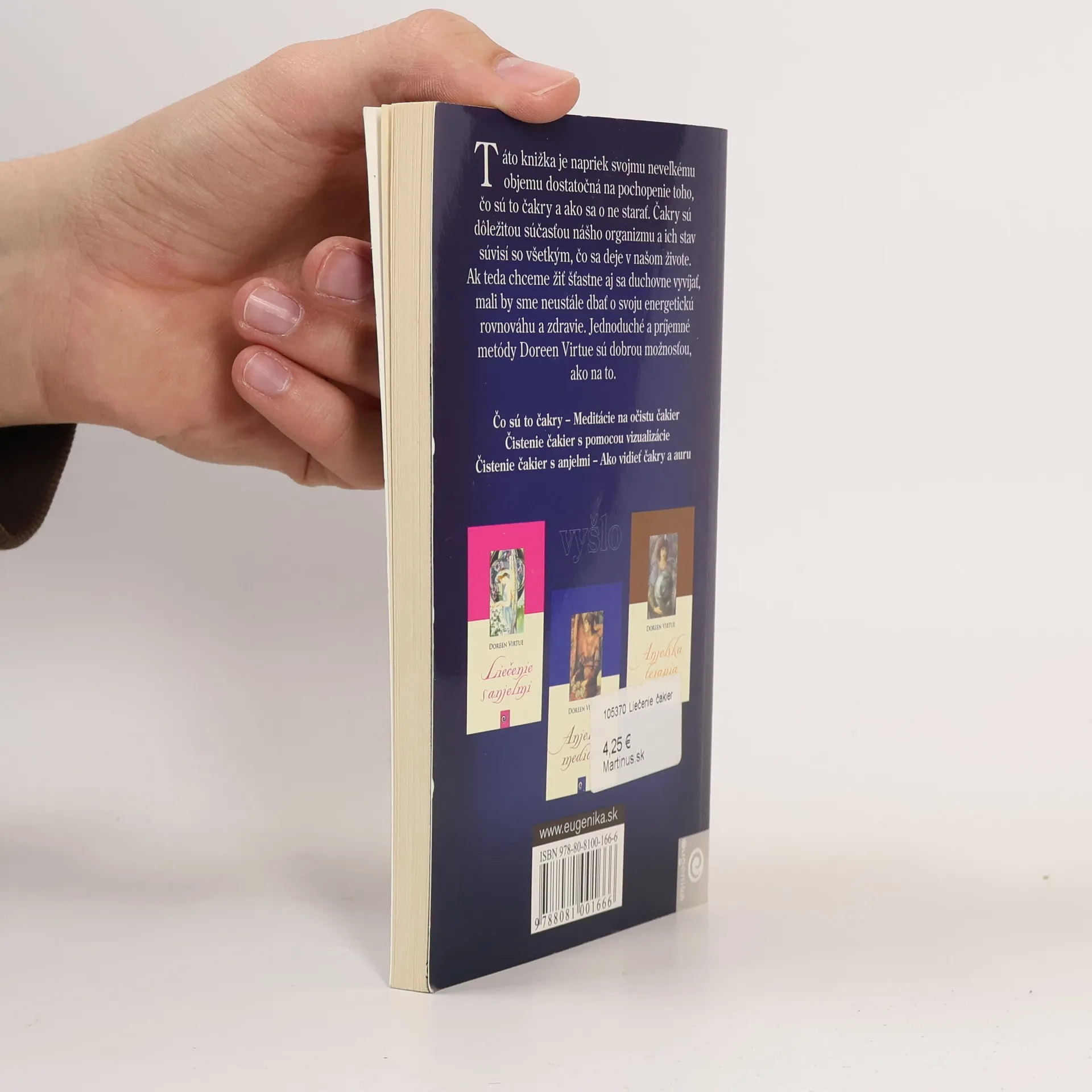 Táto knižka je napriek svojmu neveľkému objemu dostatočná na pochopenie toho, čo sú to čakry a ako sa o ne starať. Čakry sú dôležitou súčasťou nášho organizmu a ich stav súvisí so všetkým, čo sa deje v našom živote. Ak teda chceme žiť šťastne aj sa duchovne vyvíjať, mali by sme neustále dbať o svoju energetickú rovnováhu a zdravie. Jednoduché a príjemné metódy Doreen Virtue sú dobrou možnosťou, ako na to.