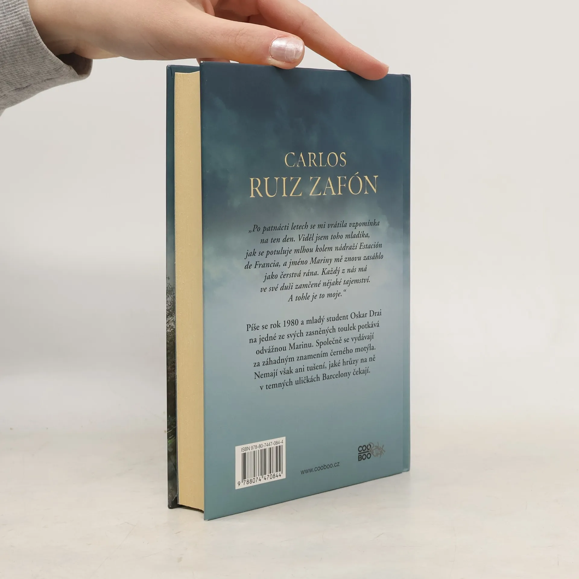 „Po patnácti letech se mi vrátila vzpomínka na ten den. Viděl jsem toho mladíka, jak se potuluje mlhou kolem nádraží Estación de Francia, a jméno Mariny mě znovu zasáhlo jako čerstvá rána. Každý z nás má ve své duši zamčené nějaké tajemství. A tohle je to moje.“ Píše se rok 1980 a mladý student Oskar Drai na jedné ze svých zasněných toulek potkává odvážnou Marinu. Společně se vydávají za záhadným znamením černého motýla. Nemají však ani tušení, jaké hrůzy na ně v temných uličkách Barcelony čekají.