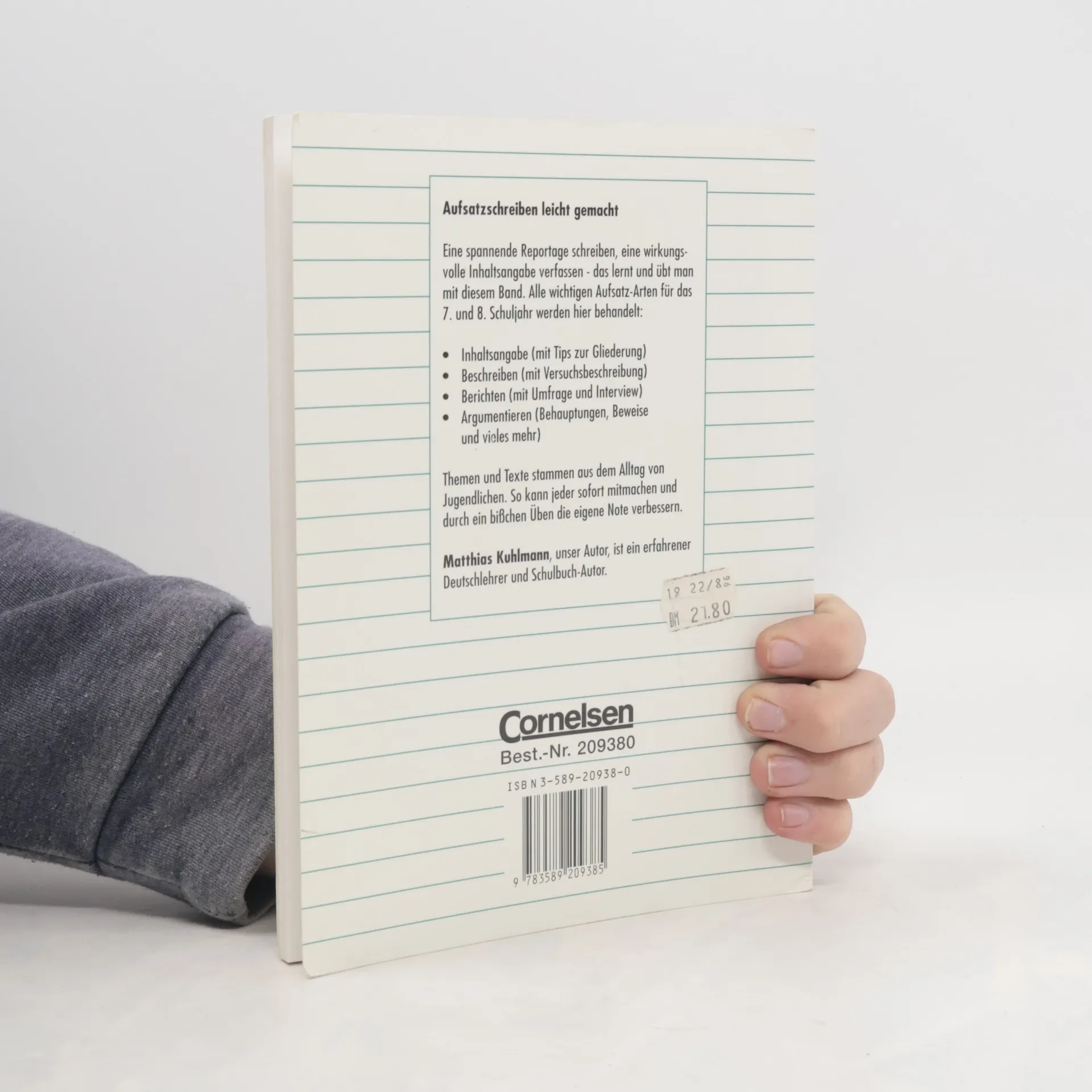 Nicht vom Aufbau her, sondern von den methodischen Kleinschritten und Übungsanforderungen her sind gegen diese Lernhilfe Einwände zu erheben. Sie bietet Aufgaben zum Verfassen einer Inhaltsangabe, zum Beschreiben, Berichten und Argumentieren. Was allerdings geboten wird, ist oft unmotiviert und vom Durchschnitts-Lernenden nur schwer mitvollziehbar. Die theoretischen Vorbemerkungen sind überflüssig, manche methodischen Wege geradezu un-didaktisch (S. 18 ff), ein Zuviel an Text überfordert die meisten noch so Lernwilligen, die vielen Regeln (wofür, für wen?) erschlagen ihn (S. 60). Die Illustrationen sind wenig konstruktiv (was soll ein Bierkrug auf S. 70 mehr als eine Lücke füllen?). Es fehlen ganz entschieden die Lernziele und die Kapitelzusammenfassungen. Keine Empfehlung, für Büchereien ohnehin problematisch wegen des "Einschreib-Muss"