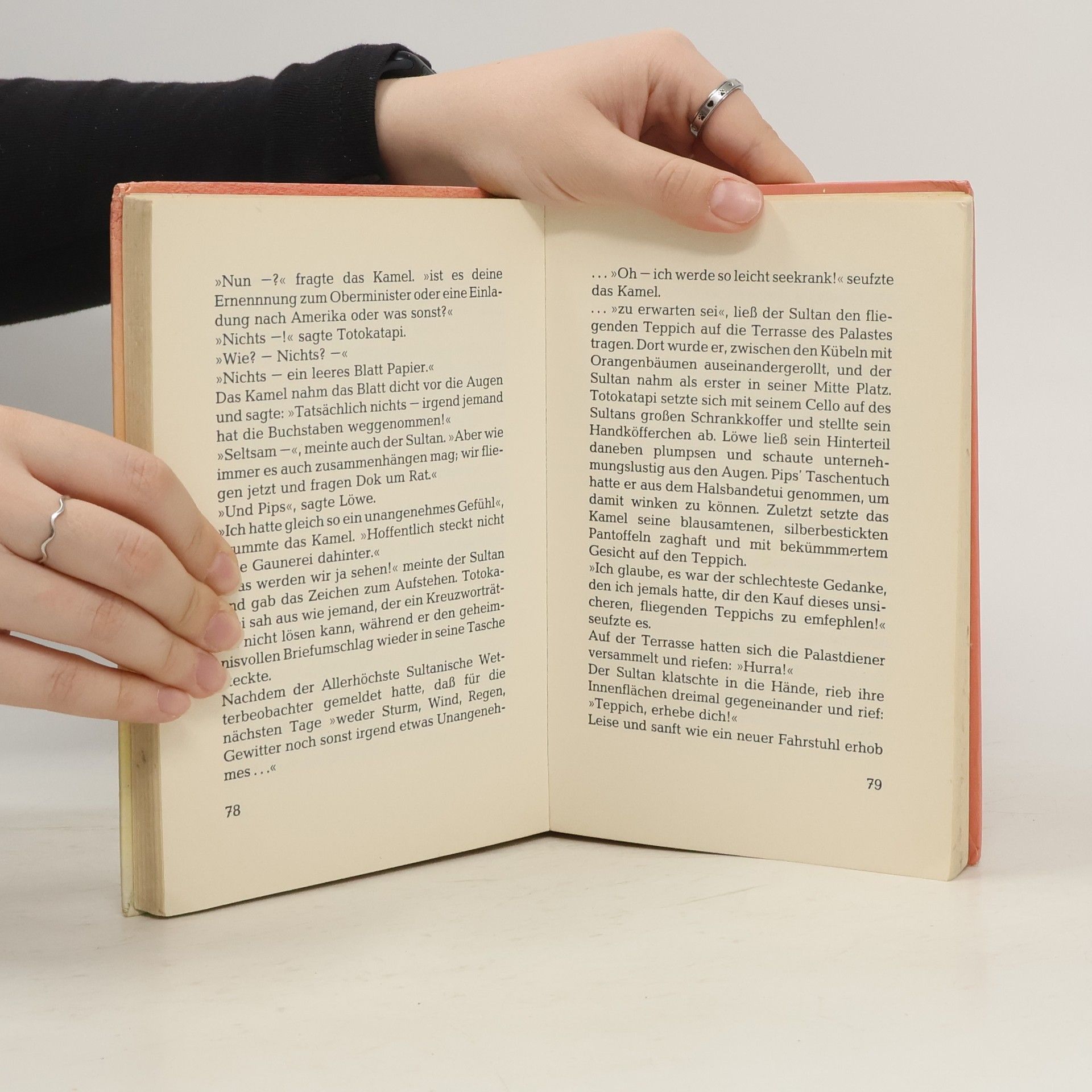 Löwe und sein Freund begleiten Totokatapi auf dem fliegenden Teppich in die kleine Stadt Irgendwo. Dort hat Totokatapi ein Kaufhaus geerbt. Aber der Gauner Mister Knister hat finstere Pläne ausgeheckt und will ihnen zuvorkommen. Band 2 von Max Kruses Löwen-Abenteuern, berühmt durch die „Augsburger Puppenkiste“. Ab 8 Jahren