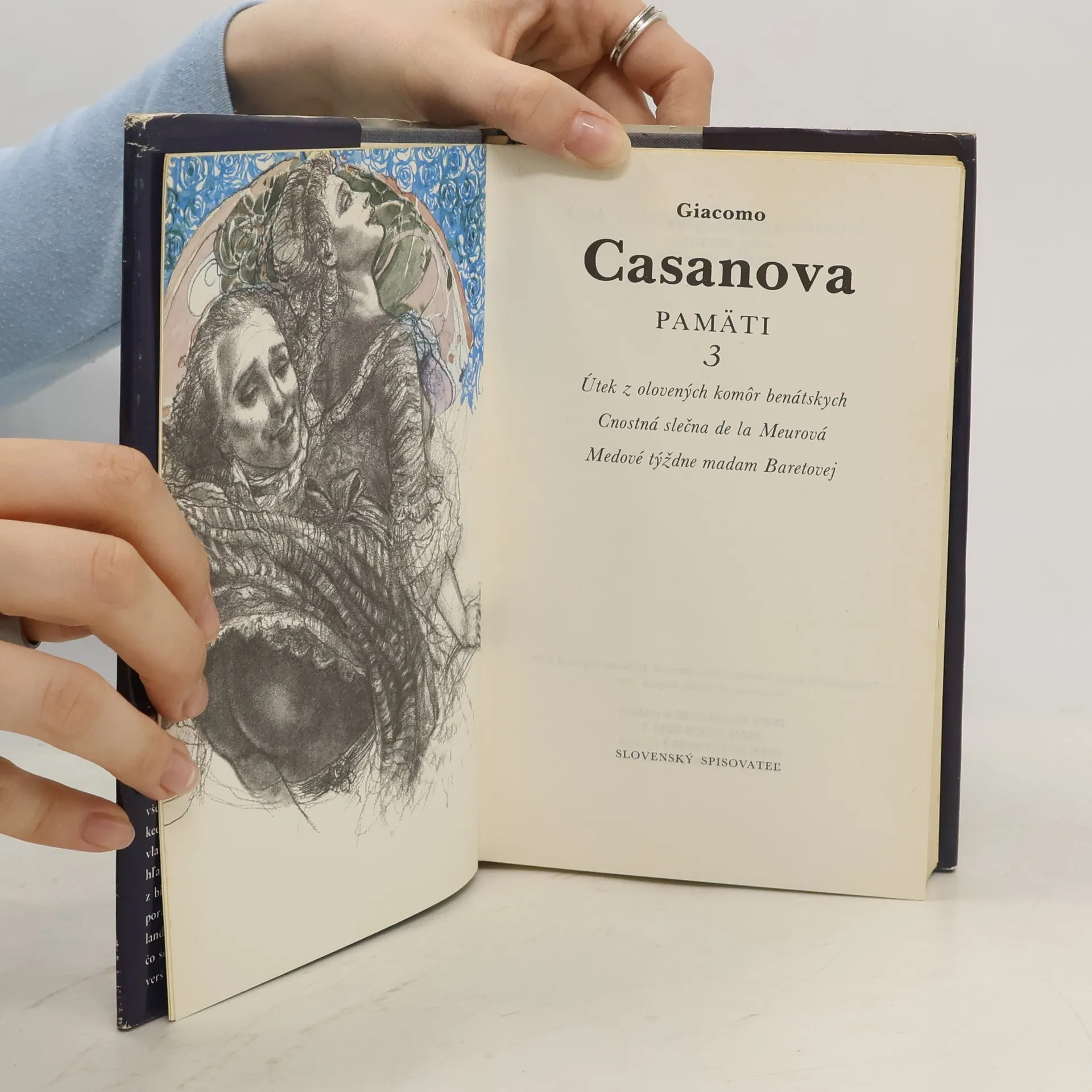 Tretí zväzok pamätí G. Casanovu. Obsahuje tri časti: Útek z olovených komôr benátskych; Cnostná slečna de la Meurová; Medové týždne madam Baretovej.