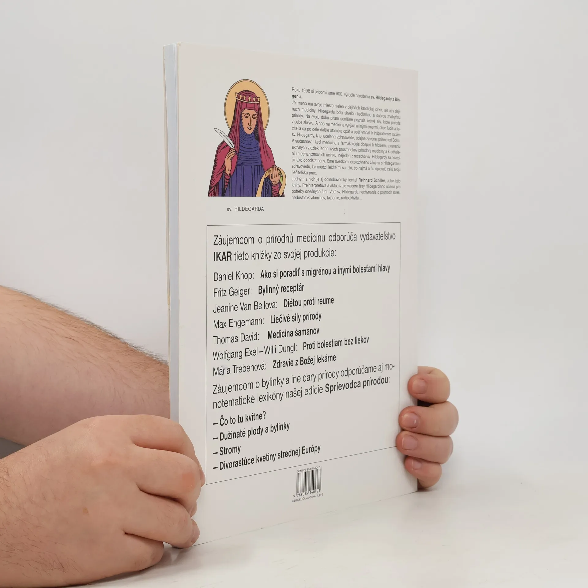 Meno sv. Hildegardy z Bingenu má svoje miesto nielen v dejinách katolíckej cirkvi, ale aj v dejinách medicíny. Hildegarda bola skvelou liečiteľkou a dobrou znalkyňou prírody. Na svoju dobu priam geniálne poznala liečivé sily, ktoré v sebe príroda skrýva. A hoci sa medicína vyvíjala aj inými smermi, chorí ľudia a liečitelia sa po stáročia opäť a opäť vracali k inšpiratívnym radám sv. Hildegardy, k jej ucelenej zdravovede, údajne zjavenej priamo od Boha. V súčasnosti, keď medicína a farmakológia dospeli k hlbšiemu poznaniu aktívnych zložiek jednotlivých prostriedkov prírodnej medicíny, ukázal sa nejeden z receptov sv. Hildegardy ako účinný. Záujem o Hildegardinu zdravovedu je stále intenzívny a medzi liečiteľmi sú mnohí, čo svoju liečiteľskú prax opierajú predovšetkým o jej metódy. Jedným z nich je aj dolnobavorský liečiteľ Reinhard Schiller, autor tejto knihy. Nanovo interpretuje a aktualizuje viaceré tézy Hildegardinho učenia pre potreby dnešných ľudí. Veď sv. Hildegarda nechyrovala o pojmoch ako stres, nedostatok vitamínov či fajčenie...