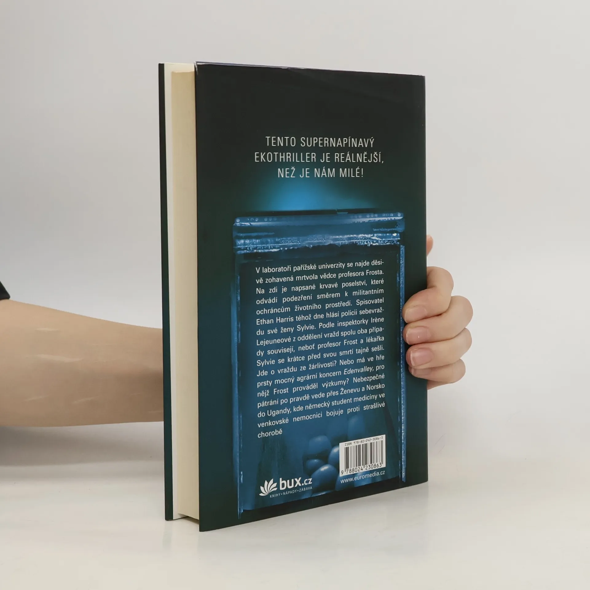 V laboratoři pařížské univerzity se najde děsivě zohavená mrtvola vědce profesora Frosta. Na zdi je napsané krvavé poselství, které odvádí podezření směrem k militantním ochráncům životního prostředí. Spisovatel Ethan Harris téhož dne hlásí policii sebevraždu své ženy Sylvie. Podle Irene Lejeuneové z oddělení vražd spolu oba případy souvisejí, neboť profesor Frost a lékařka Sylvie se krátce před svou smrtí tajně sešli. Jde o vraždu ze žárlivosti? Nebo má ve hře prsty mocný agrární koncern Edenvalley, pro nějž Frost kdysi prováděl výzkumy? Nebezpečné pátrání po pravdě vede přes Ženevu a Norsko do Ugandy, kde německý student medicíny ve venkovské nemocnici bojuje proti strašlivé chorobě.