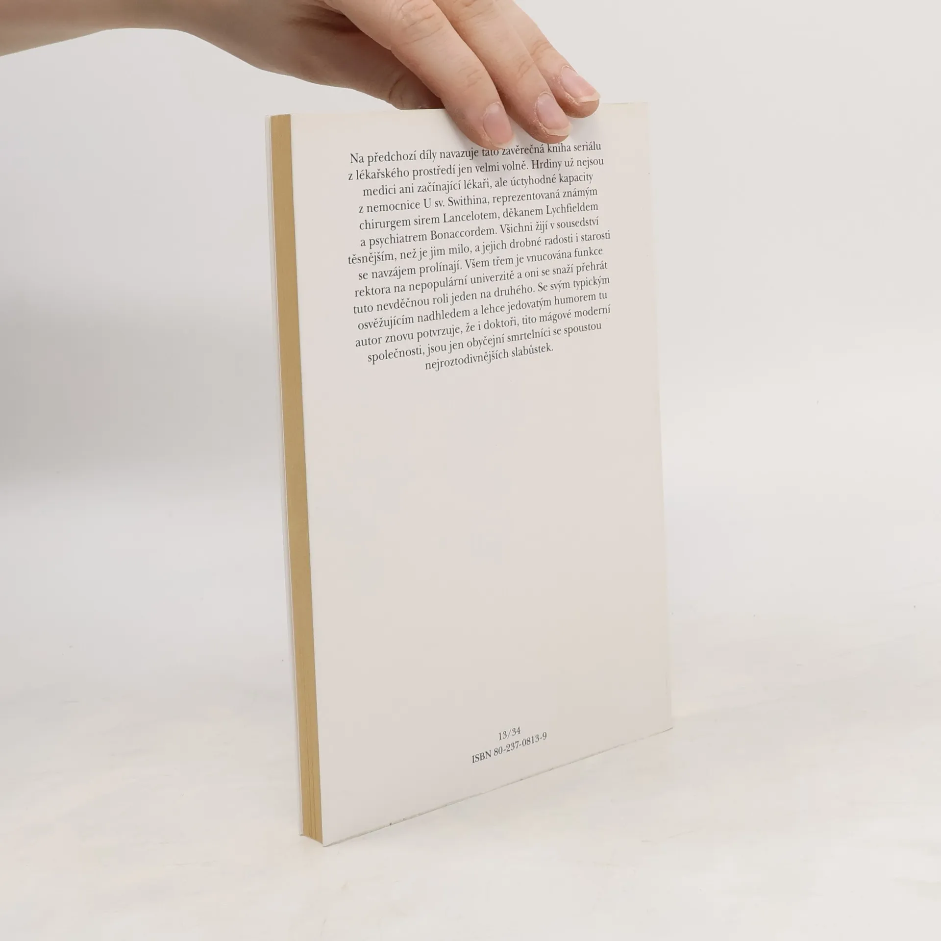 Další z doktorských příběhů. Hrdiny už nejsou medici ani začínající lékaři, ale úctyhodné kapacity z nemocnice U sv. Swithina, reprezentovaná známým chirurgem sirem Lancelotem, děkanem Lychfieldem a psychiatrem Bonaccordem. Se svým typickým osvěžujícím nadhledem a lehce jedovatým humorem tu autor znovu potvrzuje, že i doktoři jsou jen obyčejní smrtelníci se spoustou nejroztodivnějších slabůstek.