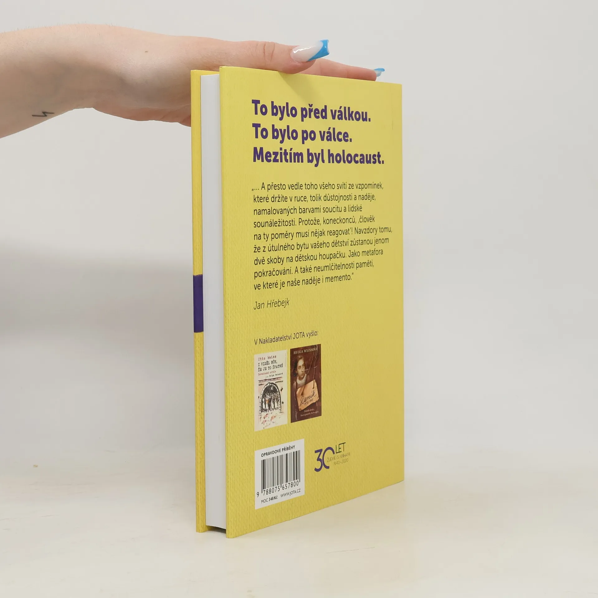 Autobiografie akademické malířky a přeživší holocaustu, Helgy Hoškové-Weissové, nabízí fascinující pohled na její život. Vzpomíná na idylické dětství v předválečné Praze a na rodinu, přičemž vypráví příběhy těch, kteří se již nikdy nevrátili z nacistických táborů. K válce se vrací jen okrajově, neboť většina jejího příběhu je zachycena v knize Deník 1938–1945, která se stala součástí učebnic historie. Klíčová je druhá část, kde se vrací do poválečné Prahy, kde na ni a její maminku nikdo nečekal. Popisuje lidi, kteří jim pomohli, i ty, kteří se k nim obrátili zády. Atmosféra v poválečném Československu je poznamenána údivem sousedů z jejich návratu a nepochopením jejich příběhu. Hošková-Weissová provází čtenáře svým životem, studiem a snahou začlenit se do společnosti, která ji však odmítá. Po překonání těžkostí dostuduje, vdá se a porodí děti, přičemž se ponoří do malování jako prostředku vyrovnání se s traumatem holocaustu. Po roce 1989 spoluzakládá Terezínskou iniciativu a přednáší po světě. Její příběh je svědectvím o době, která se nesmí opakovat, a pro její děti a vnuky nyní vypráví svůj příběh.