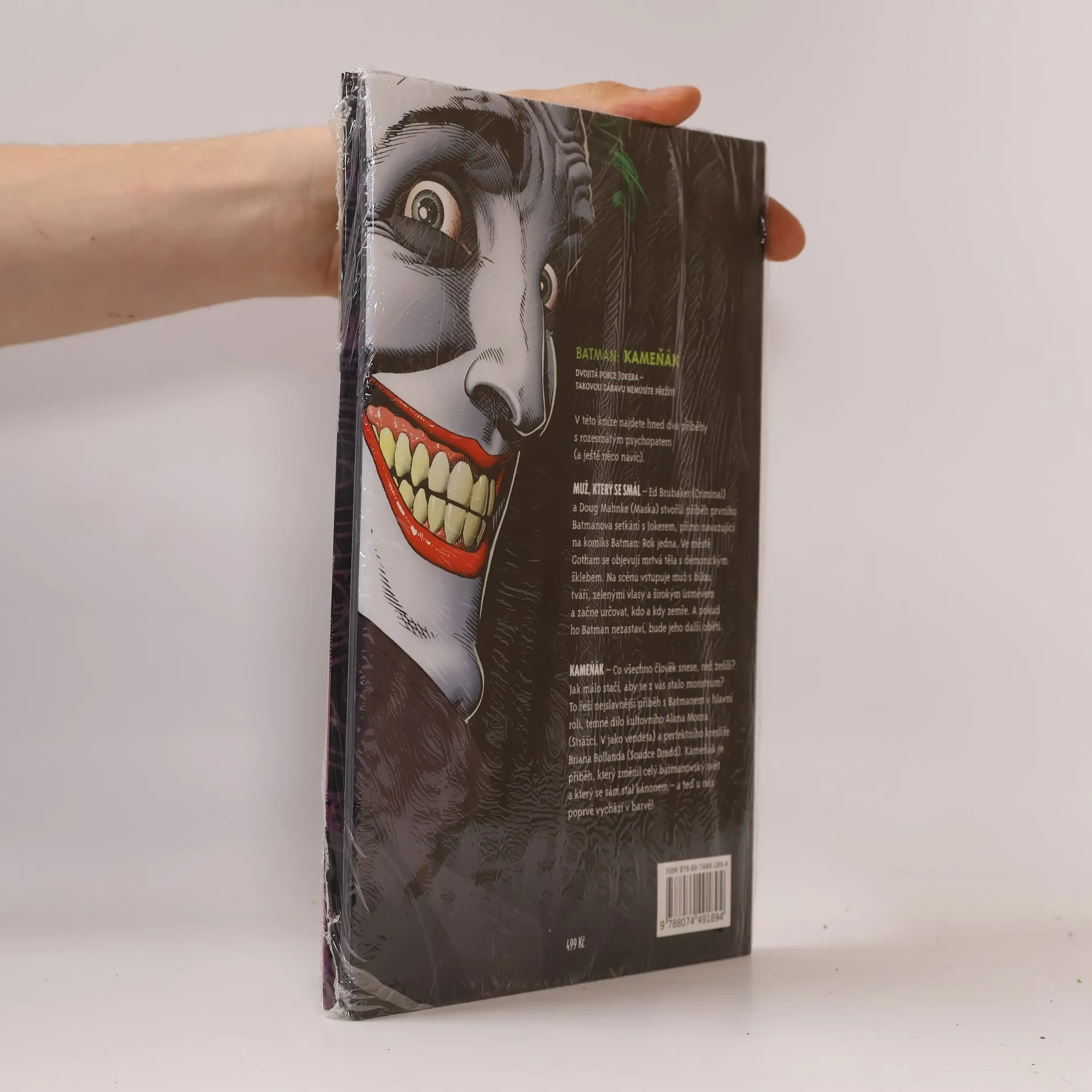 Muž, který se smál – Ed Brubaker (Criminal) a Doug Mahnke (Maska) stvořili příběh prvního Batmanova setkání s Jokerem, přímo navazující na komiks Batman: Rok jedna. V městě Gotham se začínají objevovat mrtvá těla s démonickým úsměvem. Na scénu vstupuje muž s bílou tváří, zelenými vlasy a širokým úsměvem a začne určovat, kdo a kdy zemře. A pokud ho Batman nezastaví, bude jeho další obětí. Kameňák – Co všechno člověk snese, než zešílí? Jak málo stačí, aby se z vás stalo monstrum? To řeší ten nejslavnější příběh s Batmanem v hlavní roli, temné dílo kultovního Alana Moora (Strážci, V jako vendeta) a perfektního kreslíře Briana Bollanda. Kameňák je příběh, který změnil celý batmanovský svět a který se sám stal kánonem – a teď u nás poprvé vychází v barvě! Dotisk knihy se stejným isbn vyšel v roce 2016.
