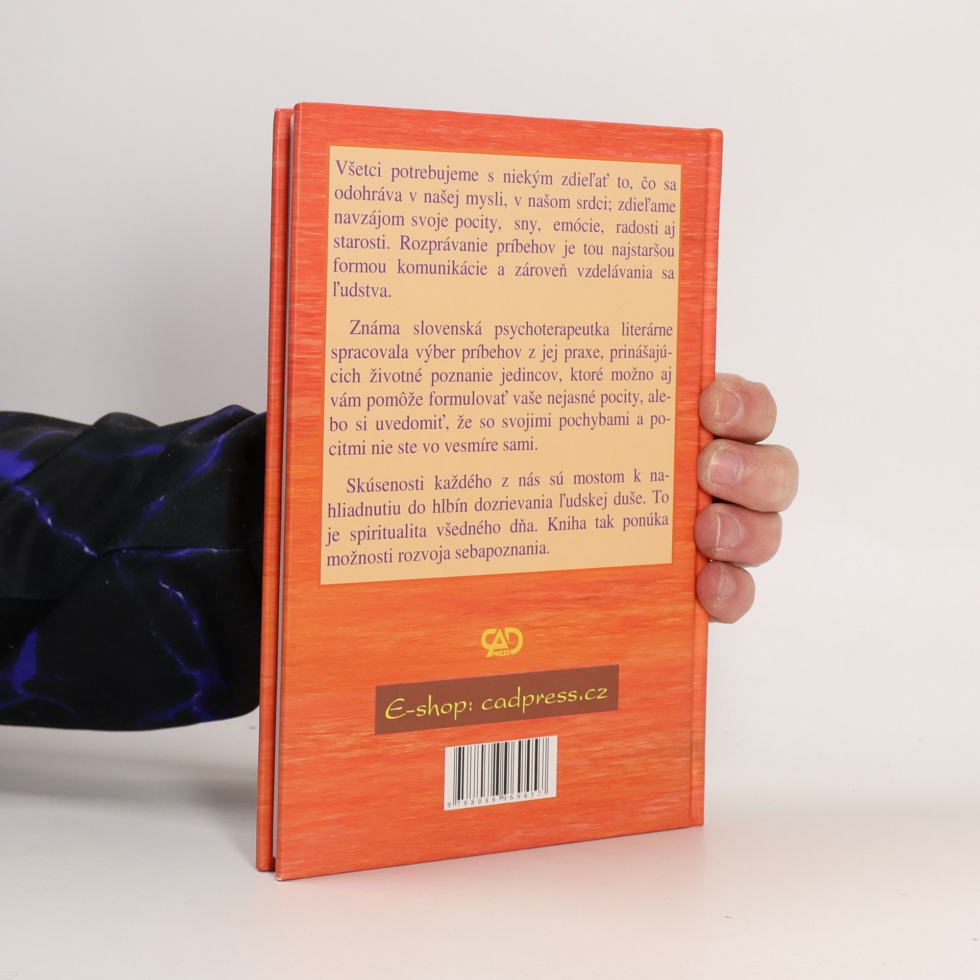 Známa slovenská psychoterapeutka literárne spracovala výber príbehov z jej praxe, prinášajúcich životné poznanie jedincov, ktoré možno aj vám pomôže formulovať vaše nejasné pocity, alebo si uvedomiť, že so svojimi pochybami a pocitmi nie ste vo vesmíre sami. Všetci potrebujeme s niekým zdieľať to, čo sa odohráva v našej mysli, v našom srdci; zdieľame navzájom svoje pocity, sny, emócie, radosti aj starosti. Rozprávanie príbehov je tou najstaršou formou komunikácie a zároveň vzdelávania sa ľudstva. Skúsenosti každého z nás sú mostom nahliadnutiu do hlbín dozrievania ľudskej duše. To je spiritualita všedného dňa. Kniha tak ponúka možnosti rozvoja sebapoznania.