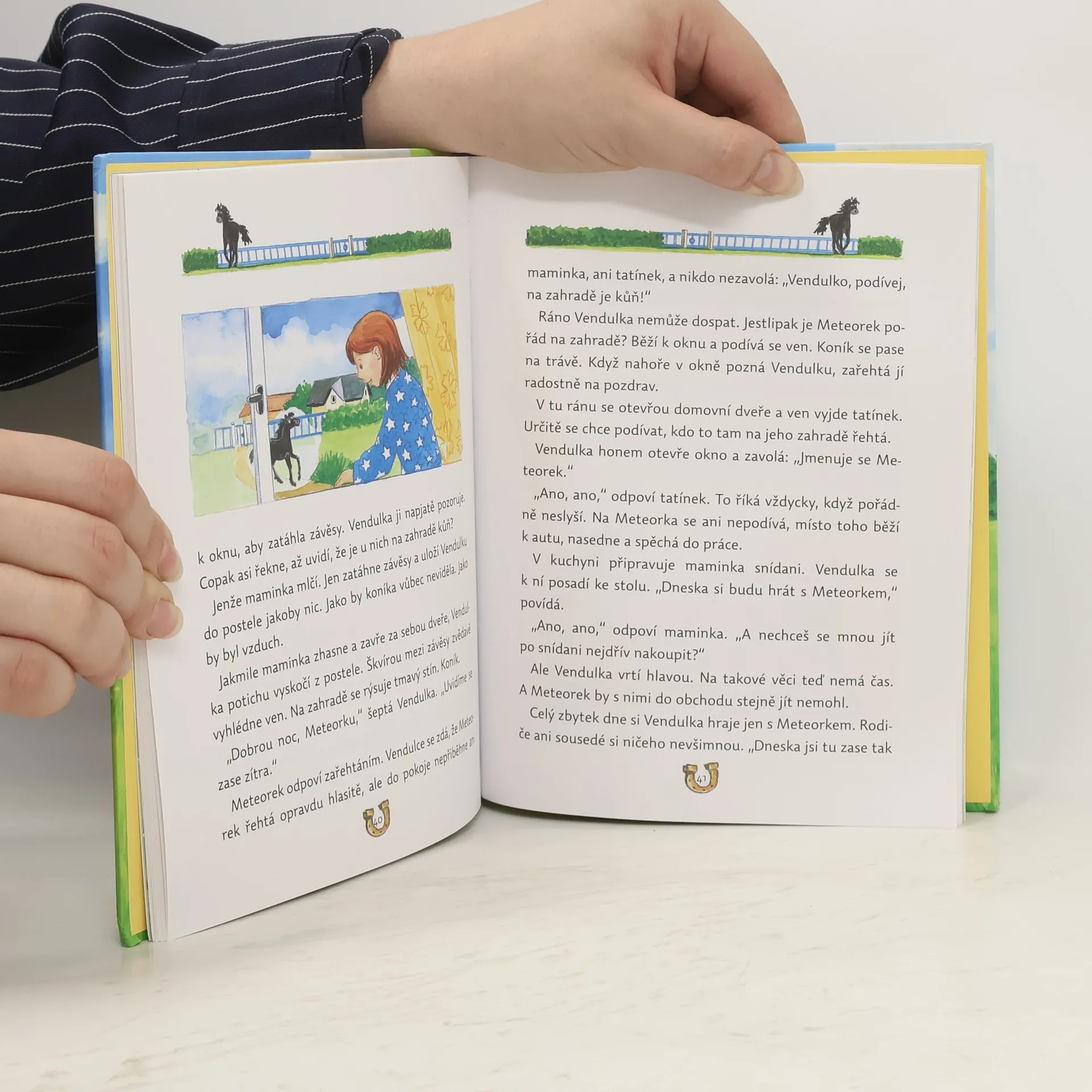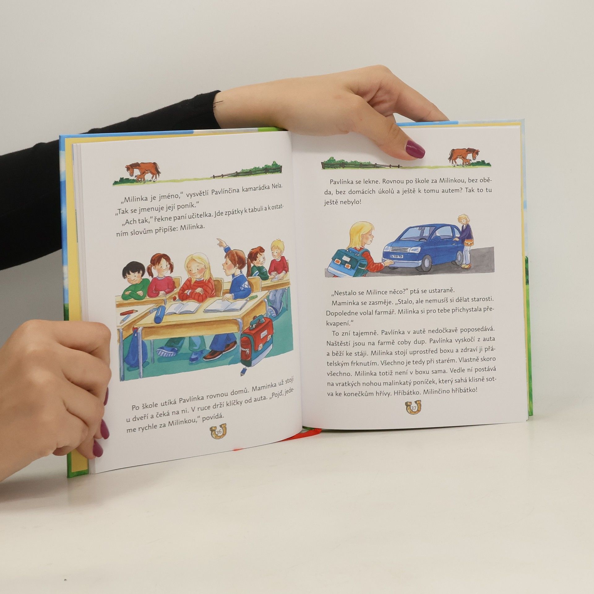 Každé vyprávění se odehrává v jiném prostředí, nechybí mu dobrodružná zápletka, napětí a samozřejmě šťastný konec. Tak je tu holčička z rodiny cirkusových umělců, které tatínek nechce dovolit akrobacii na koni; kluk, kterému se kluci smějí, že jeho největší láskou není fotbal, ale koně; ošklivé hříbátko; malý indián, který zachrání divokého koně před zloději, a další malí hrdinové. Milé příběhy jsou doprovázeny krásnými barevnými ilustracemi a na konci knihy čeká děti ještě malý úkol!