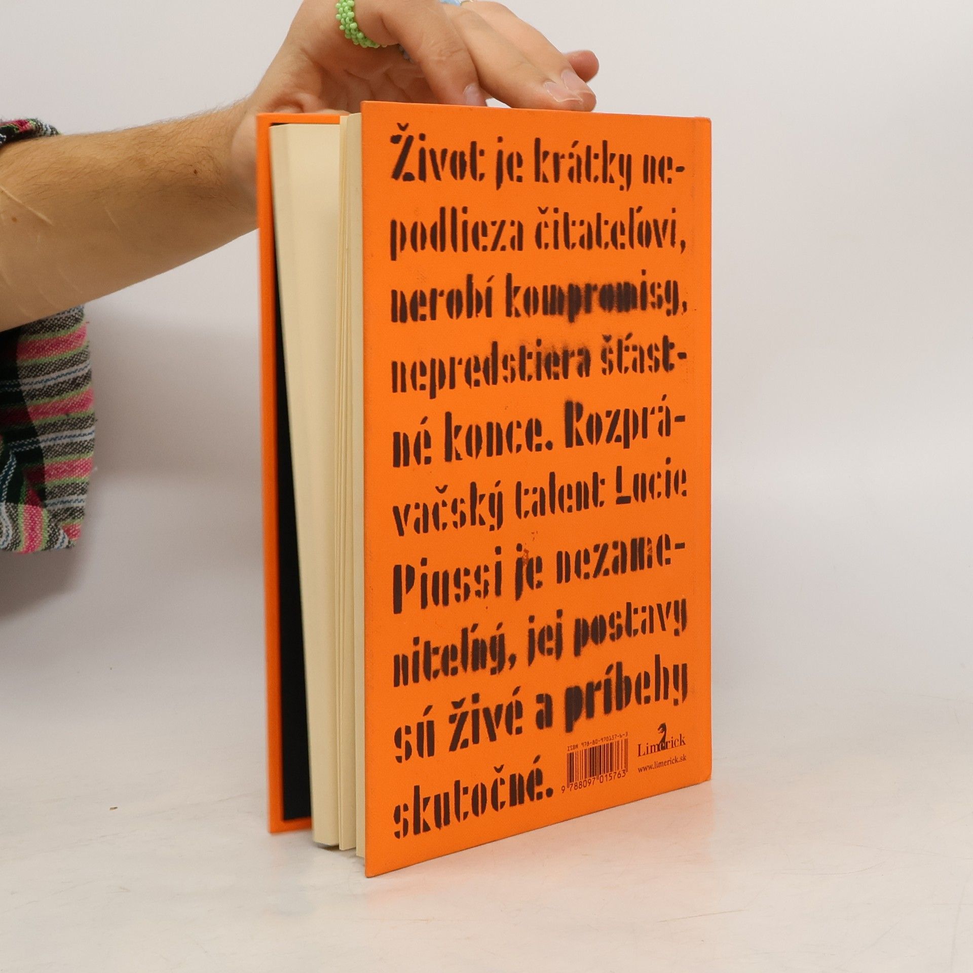 Táto kniha je výberom z tvorby za viac ako desať rokov. Tvorí ju osem poviedok. Sú to prozaické texty plné osudových stretnutí, umierajúcich lások a rodiacich sa vzťahov. Príbehy Lucie Piussi sú poklady zahalené cigaretovým dymom. Vystupujú v nich umelci, bitkári, krčmoví básnici, géniovia, blázni, štetky, svätci i zatratenci. Jej postavy kričia dovnútra, prežívajú naozajstnú bolesť, vášnivo milujú, intenzívne nenávidia. Sú to ľudia z mäsa a kostí. Svoje dni prežívajú v očakávaní lepších časov, ktoré neprídu.