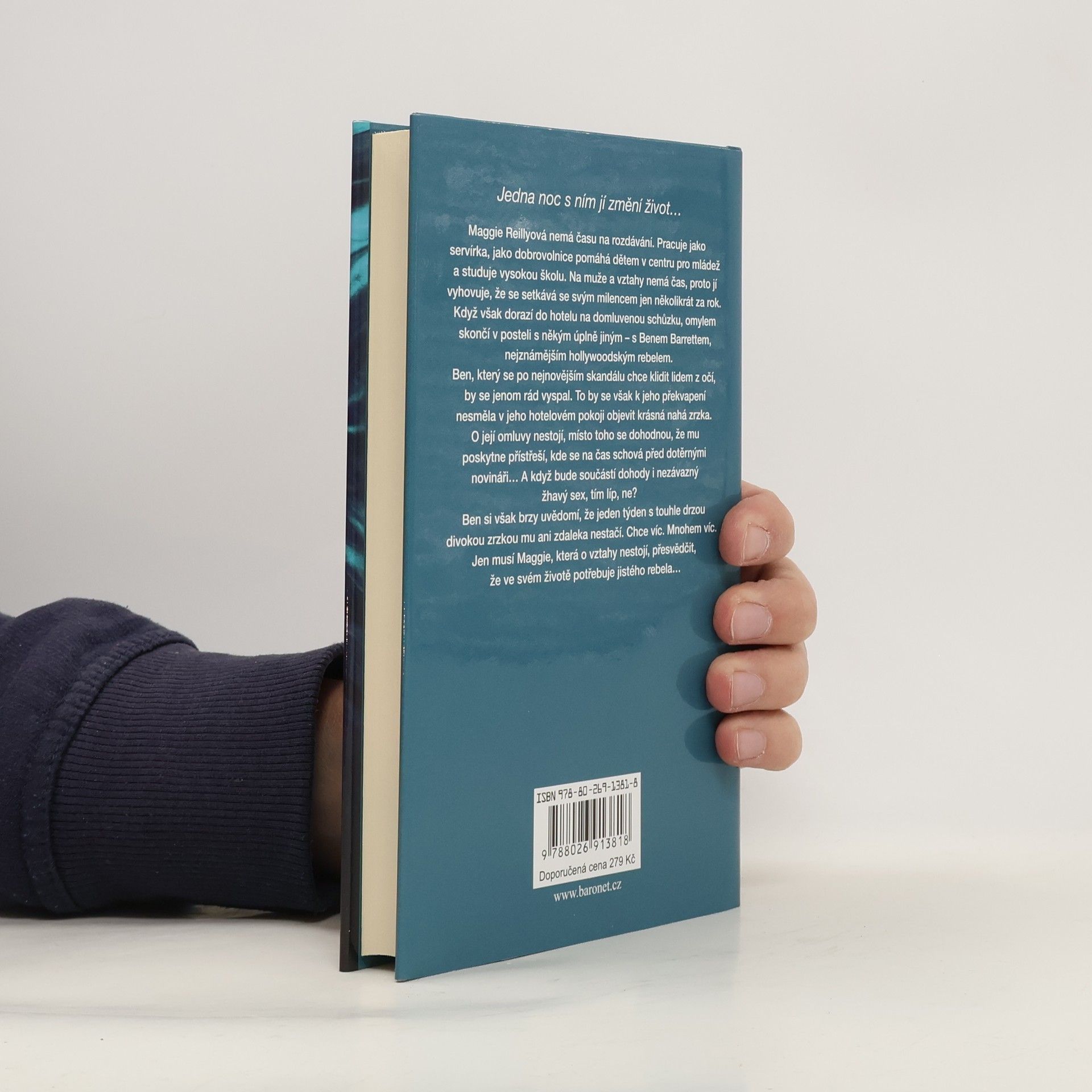 Jedna noc s ním jí změní život… Maggie Reillyová nemá času na rozdávání. Pracuje jako servírka, jako dobrovolnice pomáhá dětem v centru pro mládež a studuje vysokou školu. Na muže a vztahy nemá čas, proto jí vyhovuje, že se setkává se svým milencem jen několikrát za rok. Když však dorazí do hotelu na domluvenou schůzku, omylem skončí v posteli s někým úplně jiným – s Benem Barrettem, nejznámějším hollywoodským rebelem. Ben, který se po nejnovějším skandálu chce klidit lidem z očí, by se jenom rád vyspal. To by se však k jeho překvapení nesměla v jeho hotelovém pokoji objevit krásná nahá zrzka. O její omluvy nestojí, místo toho se domluví, že mu poskytne přístřeší, kde se na čas schová před dotěrnými novináři… a když bude součástí dohody i nezávazný žhavý sex, tím líp, ne? Ben si však brzy uvědomí, že jeden týden s touhle drzou divokou zrzkou mu ani zdaleka nestačí. Chce víc. Mnohem víc. Jen musí Maggie, která o vztahy nestojí, přesvědčit, že ve svém životě potřebuje jistého rebela…