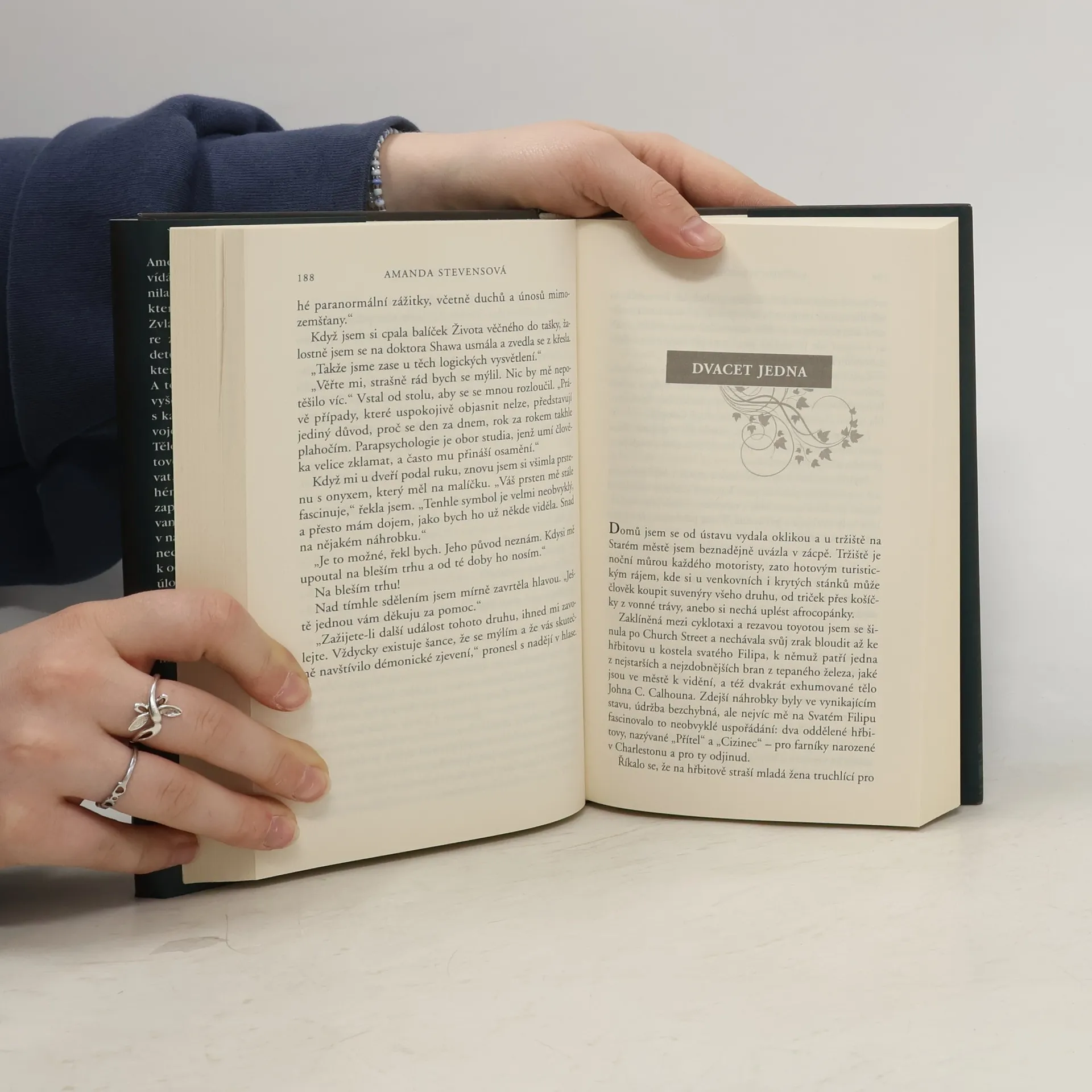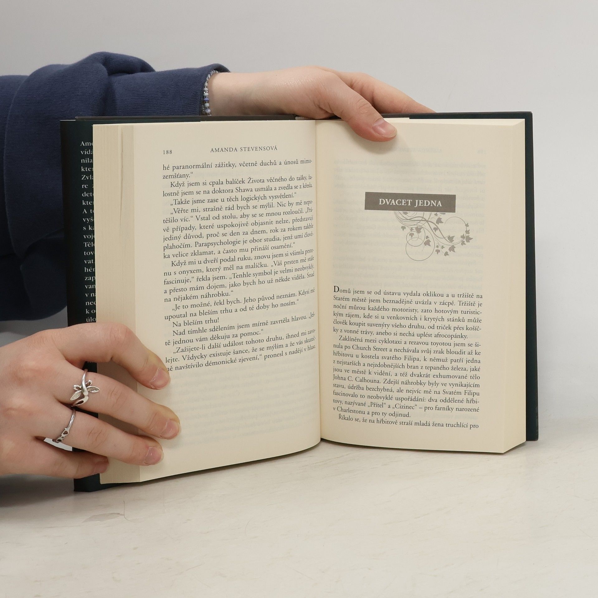 Amelia Grayová od svých devíti let vídá duchy. Aby se před nimi chránila, úzkostlivě dodržuje pravidla, která jí v dětství vštípil otec. Zvláště jedno z nich však nyní bere ze své. John Devlin, policejní detektiv, Amelii přitahuje více než kterýkoliv jiný muž v jejím životě. A to navzdory tomu, že společně vyšetřují sérii krutých vražd a že s každým soumrakem proplují závojem jeho dva duchové. Tělo mladé dívky, nalezené na hřbitově, který měla Amelia zrestaurovat, je jen prvním článkem v dlouhém řetězci matoucích stop, zapomenutých příběhů a zamlčovaných tajemství. Vodítka obsažená v náhrobní symbolice, jež Amelii zanechává vrah, ji sice dovedou blíž k odhalení pravdy, ale také ke zjištění děsivé úlohy, kterou má v celém případu sehrát ona sama. Žal a zoufalství dokáže k člověku připoutat melancholickou duši, ale i bytost naplněnou děsivou nenávistí… a ta může sahat až za hrob. zdroj: legie.info