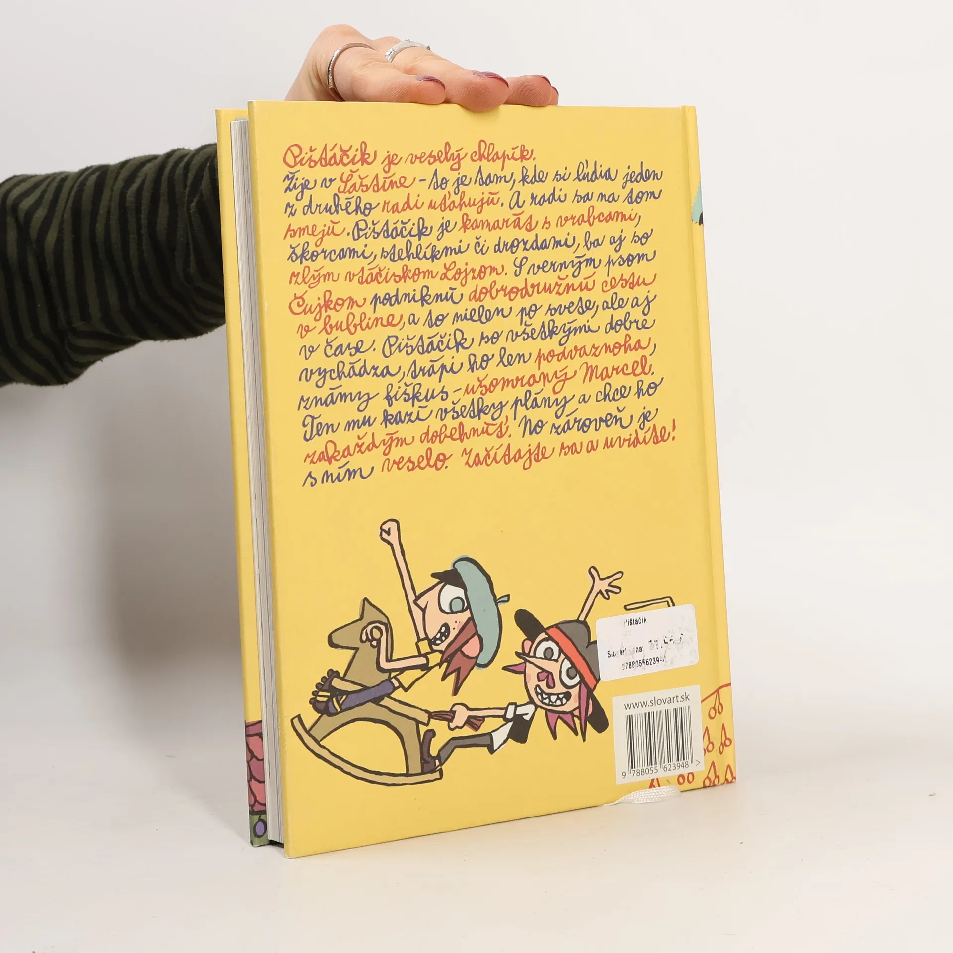 Veselá a krásne ilustrovaná kniha o Pištáčikovi, ktorý žije v Šaštíne, kde si ľudia radi zo seba uťahujú. Pištáčik je kamarát so všetkými vtákmi, ktoré prilietajú v húfoch do jeho záhrady hostiť sa na jeho čerešni. Okrem toho má aj kamaráta, psa Čujku, s ktorým tiež dobre vychádza. Trápi ho len ušomraný Marcel, známy fiškus, ktorý mu kazí všetky plány, no zároveň je s ním veselo. Ako sa to všetko skončí sa dočítate v knižke.