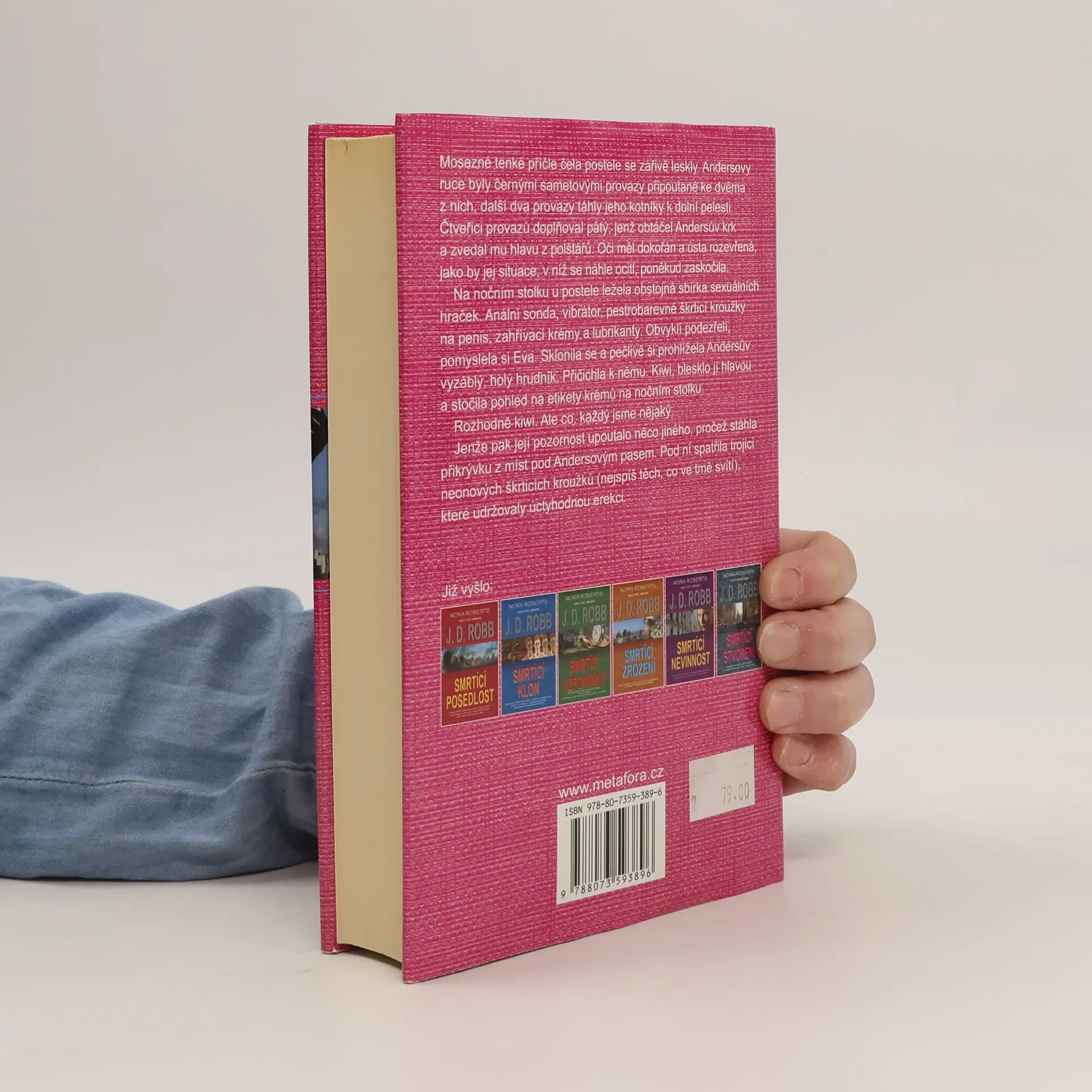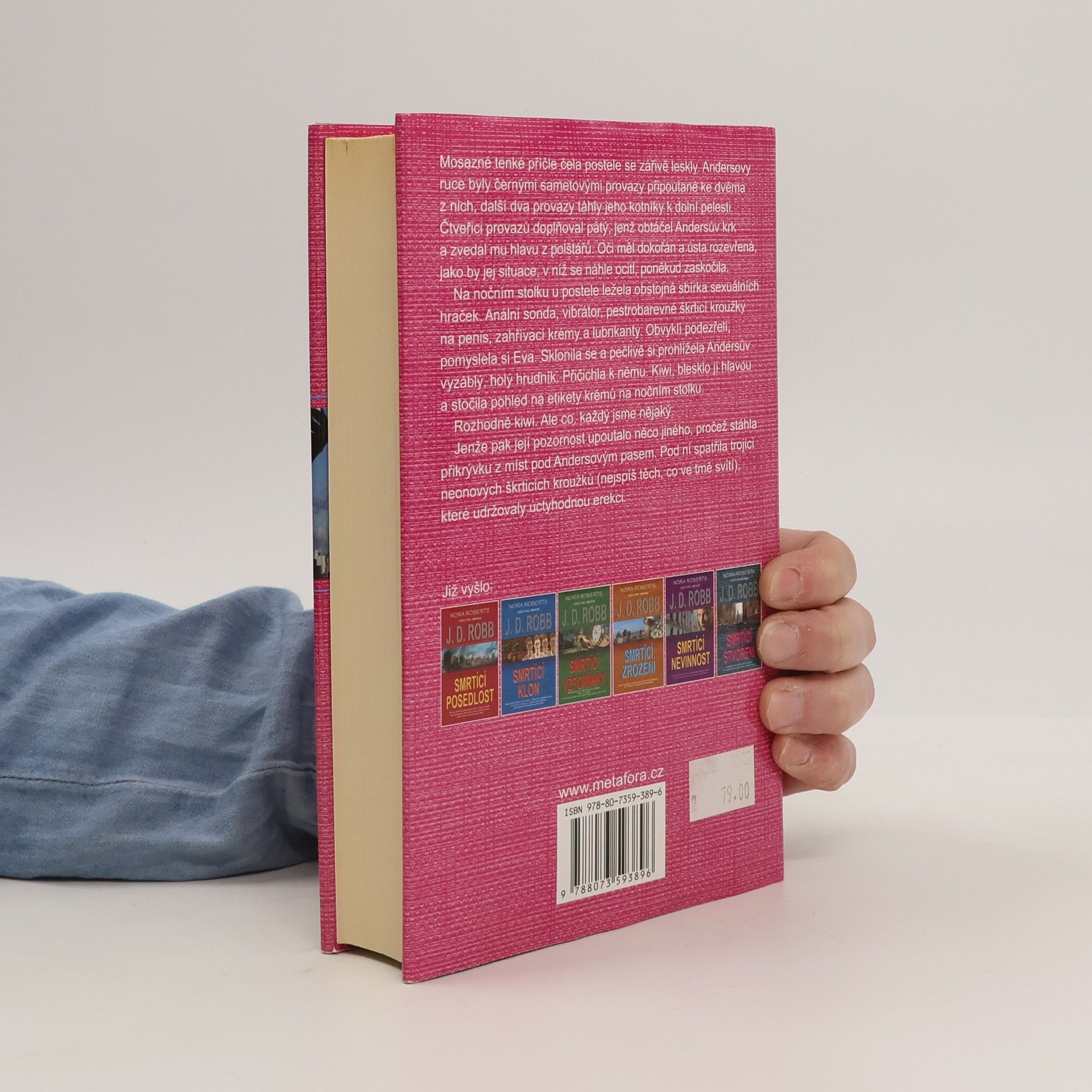 Eva Dallasová, vyšetřovatelka z blízké budoucnosti, má opět zapeklitý případ V přepychové rezidenci leží na posteli boháč Thomas Anders. To by nebylo nic divného, kdyby nebyl přivázaný a mrtvý. Navíc to vypadá, že se někomu jen vymkly z rukou jisté erotické aktivity. Ale pak se z toho vyklube vražda. Poručík Eva Dallasová podezřívá čerstvou vdovu, jenže její alibi je neprůstřelné. Také Evin kolega má případ se sexuální motivací. Jeho oběti ale nepřebývá smyčka na krku jako Andersovi, nýbrž mu naopak něco chybí. Jeho mužná chlouba je uříznutá. Také tady je nejpodezřelejší osobou manželka, zvlášť když vyplují na povrch nevěry jejího muže. I ona má ovšem alibi. Kdo tedy vraždil? Eva má řádně zamotanou hlavu, ale pomalu začíná záhadu rozkrývat. Milovníci série Smrtící... si tak opět přijdou na své. Napínavé vyšetřování, neobvyklé rozuzlení. A mezitím i trocha vášně z Evina soukromého života s úžasným miliardářským manželem a setkání se známými postavami. Vítejte v New Yorku druhé poloviny 21. století!