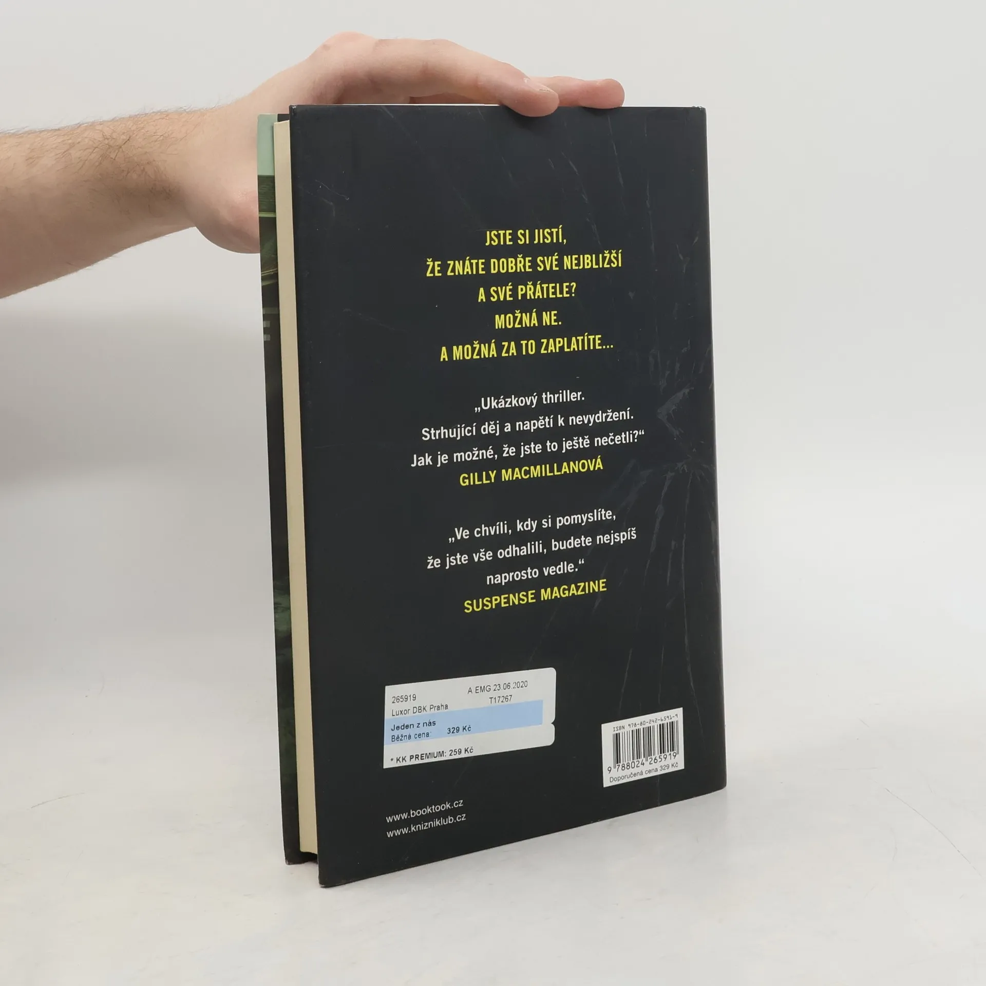 Už samotné jméno jméno autorky - Shari Lapena - je zárukou, že psychologická detektivka Jeden z nás se právem umístila mezi světovými bestsellery. Kniha by se klidně mohla jmenovat Sněhová koule, protože autorka svým čtivým a napínavým stylem předkládá, co všechno může způsobit jedna klukovská vylomenina. Pitomá loupež, řeklo by se, jenomže jakmile jednou uvedete kouli do pohybu, nabaluje na sebe stále víc a víc sněhu, řítí se ze svahu stále rychleji a rychleji... A pak to začne! Lidé, co se léta znají, najednou zjišťují, že vlastně žili mezi cizinci, že laskavost, ochota a zdánlivě dokonalé sousedské vztahy se jakoby obratem ruky změnili v podezíravost, sobeckost a nakonec i v nenávist, která se nezastaví před ničím. Co se to vlastně stalo? A jak se to vůbec mohlo stát? Na všechny tyto otázky Shari Lapena dává odpovědi, se čtenáři hraje poctivě, nic jim nezůstává dlužna.