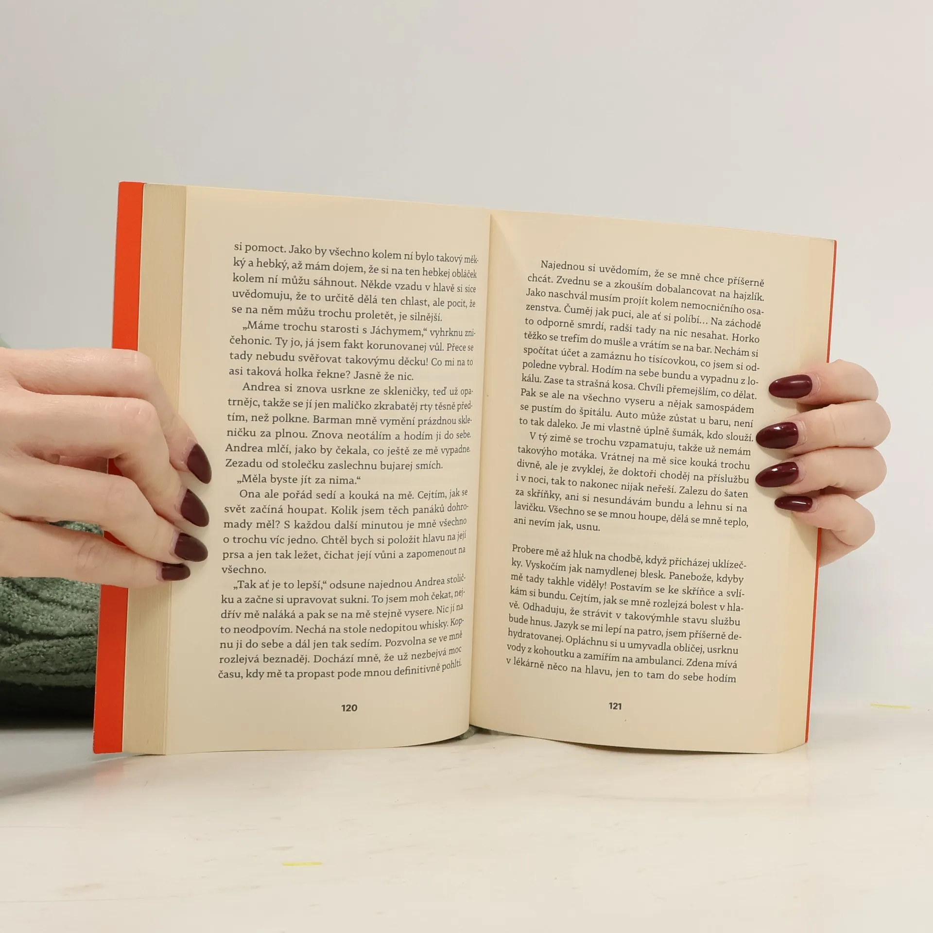 Silný příběh z pohledu mužské postavy, postupně v náznacích autorka odkrývá životní (více profesní) osud hlavního hrdiny. Celým příběhem se line boj se závislostmi a nespravedlností. Peprný jazyk, jakým je kniha napsána, dobře vykresluje hrdinu i prostředí nemocnice.