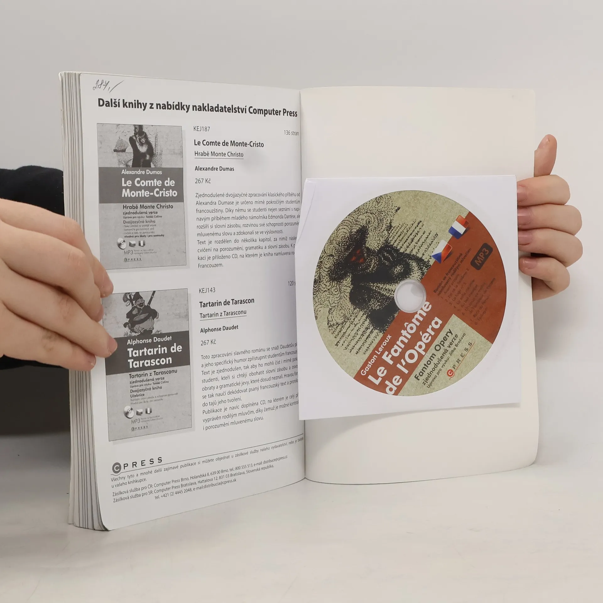 Zjednodušené dvojjazyčné zpracování legendárního románu Gastona Lerouxa je určeno středně pokročilým studentům francouzštiny. S touto knihou si studující rozšíří slovní zásobu, rozvinou své schopnosti porozumění mluvenému slovu a zdokonalí se ve výslovnosti. V publikaci najdete: - zkrácený příběh v jazyce originálu, - zrcadlový český překlad, - komentáře gramatických a lexikálních jevů, - cvičení na porozumění, gramatiku a slovní zásobu. Lerouxův román vás upoutá svou detektivní zápletkou a barvitým vylíčením operního prostředí. Romantický příběh se odehrává na pozadí magického až děsivého labyrintu pařížské Opery. Fantom Érik, znetvořený hudební génius a tajemný vládce Opery, je zamilován do mladé operní divy Christiny Daaéové. Není však jediným, kdo je krásnou zpěvačkou okouzlen. V cestě ke Christininu srdci mu stojí mladý námořník vikomt de Chagny. Ale Érik je kvůli své lásce odhodlán spáchat i ten největší zločin…