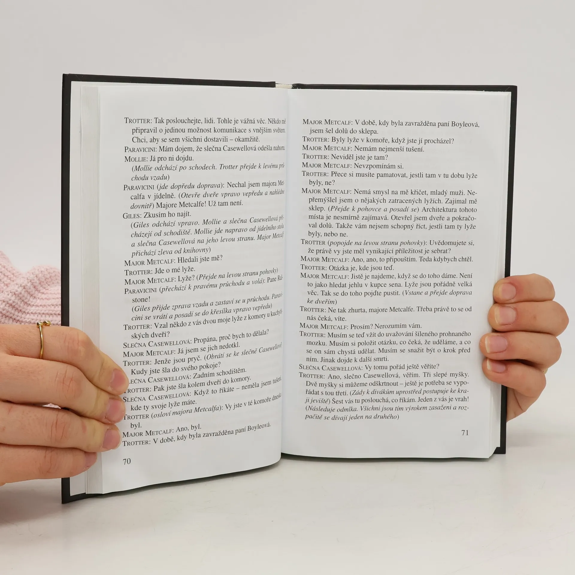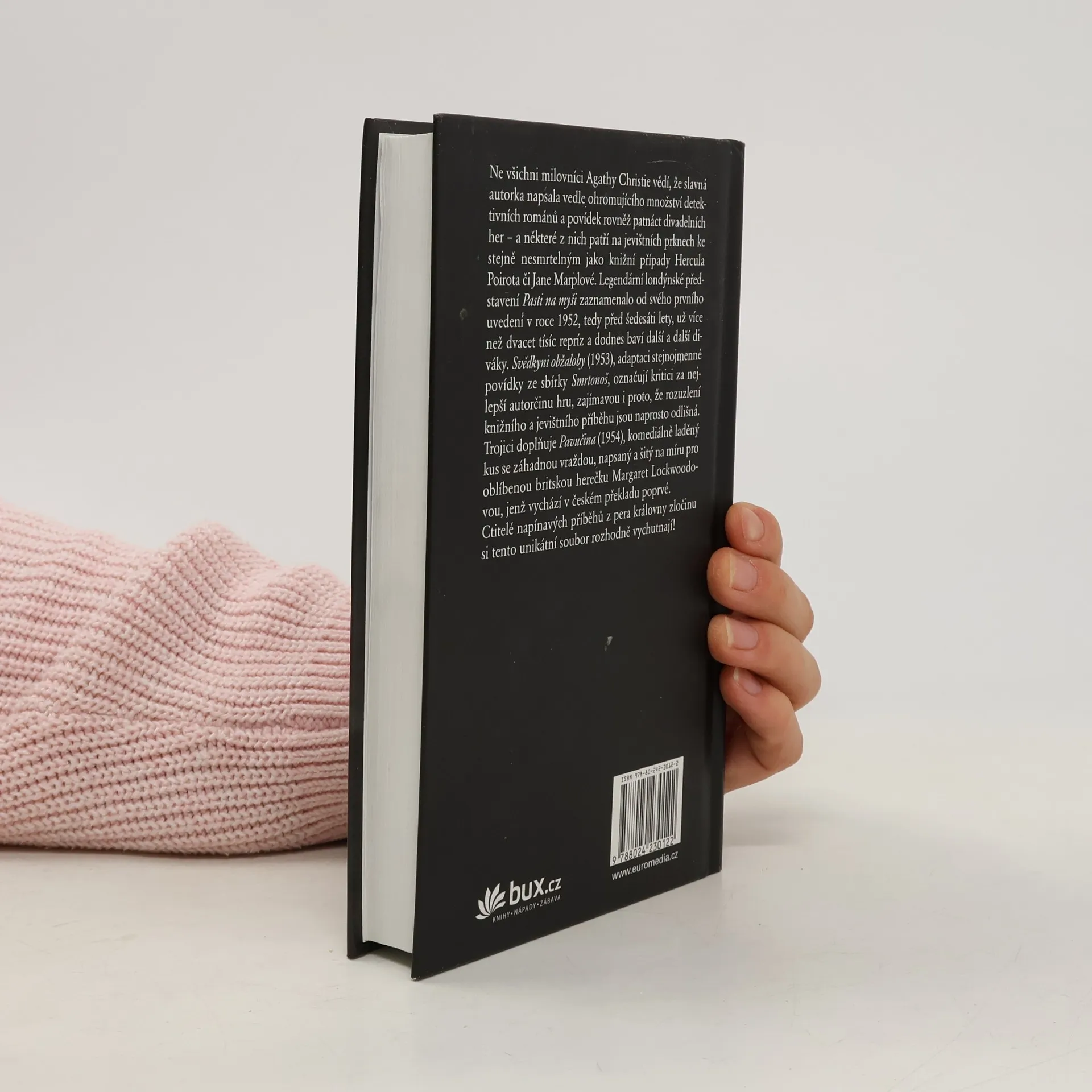 Ne všichni milovníci Agathy Christie vědí, že slavná autorka napsala vedle ohromujícího množství detektivních románů a povídek též patnáct divadelních her – tento soubor přináší hned trojici z nich. Legendární londýnské představení Pasti na myši zaznamenalo od svého prvního uvedení před šedesáti lety už více než dvacet tisíc repríz a dodnes baví další a další diváky. Svědkyni obžaloby (1953), adaptaci stejnojmenné povídky ze sbírky Smrtonoš, označují kritici za nejlepší autorčin divadelní počin, navíc rozuzlení knižního a jevištního příběhu jsou naprosto odlišná. A Pavučina (1954), komediálně laděný kus se záhadnou vraždou, napsaný a šitý na míru pro oblíbenou britskou herečku Margaret Lockwoodovou, vychází v českém překladu poprvé. Ctitelé napínavých příběhů z pera královny zločinu si perly její dramatické tvorby rozhodně vychutnají!