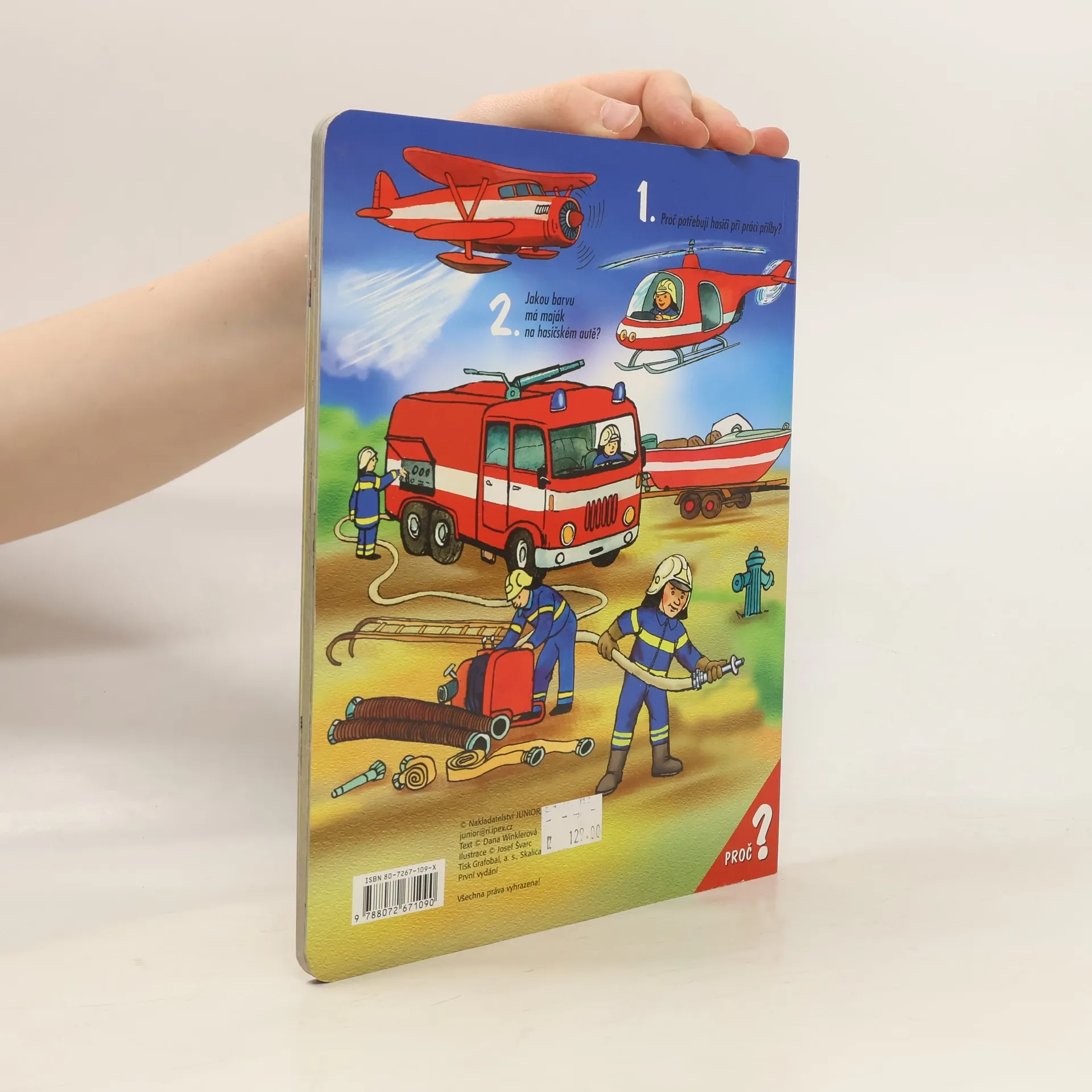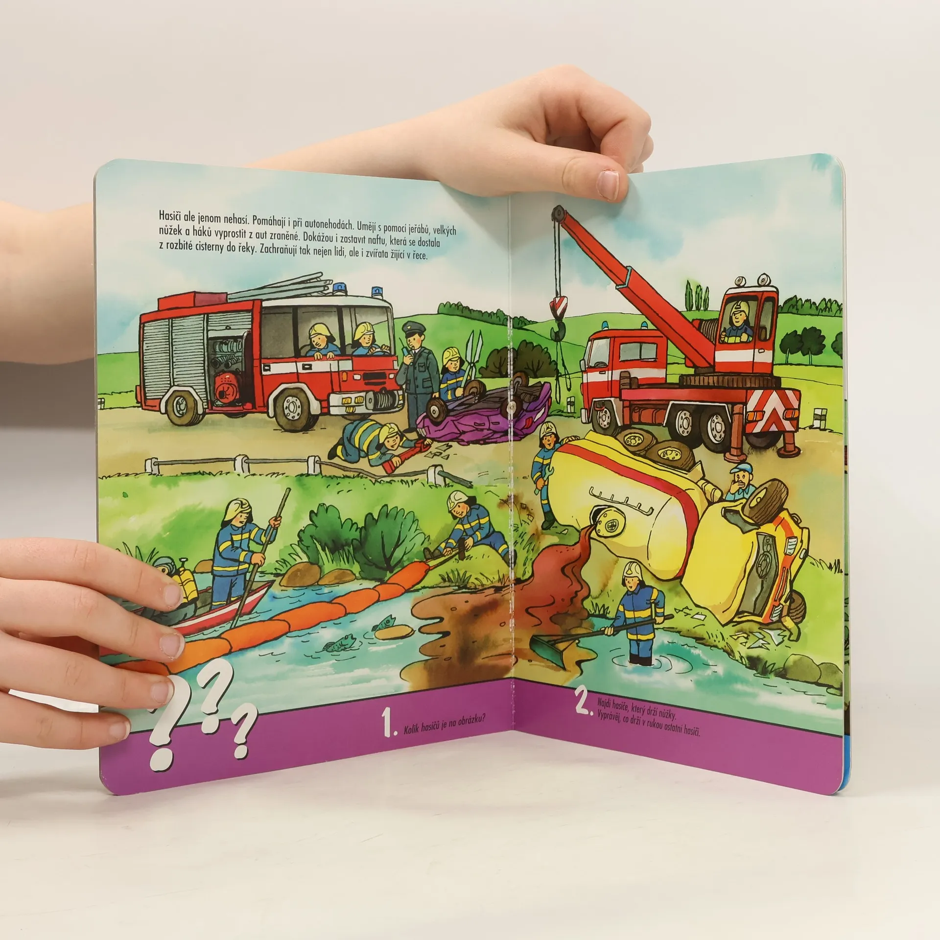 Snad každý, a nejen kluci a holčičky, se ohlédne, když uslyší houkat hasičské auto. Pronikavé “Hóóóřííí!” se rozléhá dodaleka. Co hasiči dělají a co je třeba udělat, když zjistíme, že někde hoří nebo proč hasiči potřebují žebřík se děti doví z obrázkového leporela.
