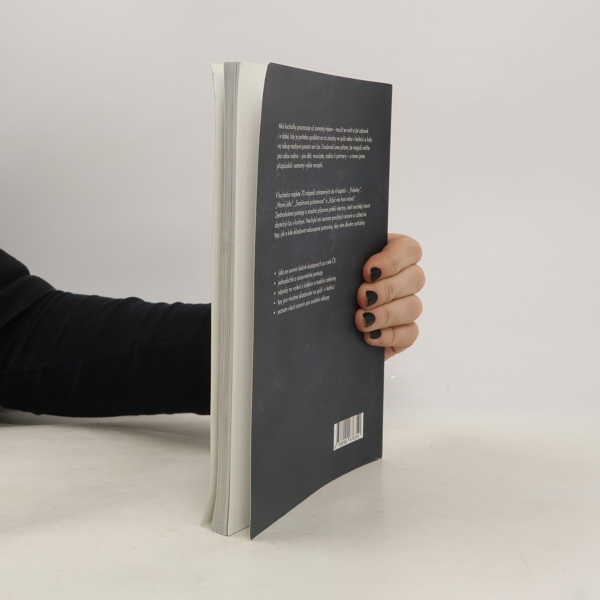 Přišli jste domů z práce a nechce se vám na nákup? Právě vám volal někdo z rodiny, že se neplánovaně staví na sobotní oběd a vy byste jim rádi uvařili domácí stravu? Mise této kuchařky je jasná – naučit se vařit a jíst zdravě i v době, kdy je potřeba spoléhat se na zásoby ve spíži nebo lednici a na nákup prostě není prostor ani čas. Dali jsme dohromady 70 nápadů na opravdová jídla, která v kuchyni připravíte během chvíle a při vaření vám můžou pomáhat i děti. V kuchařce najdete 4 kategorie – polévky, hlavní jídla, svačinovou pohotovost a recepty pro chvíle, kdy vás honí mlsná. Tentokrát jsme si posvítili na luštěniny, zdravější varianty dětských jídel, ryby, maso a také lehčí bezmasé varianty tradičních receptů. Kromě toho vás naučíme upéct nehnětený špaldový chléb, bulky k snídani nebo vyrobit kakaovo-tvarohový dezert ze 4 surovin.
