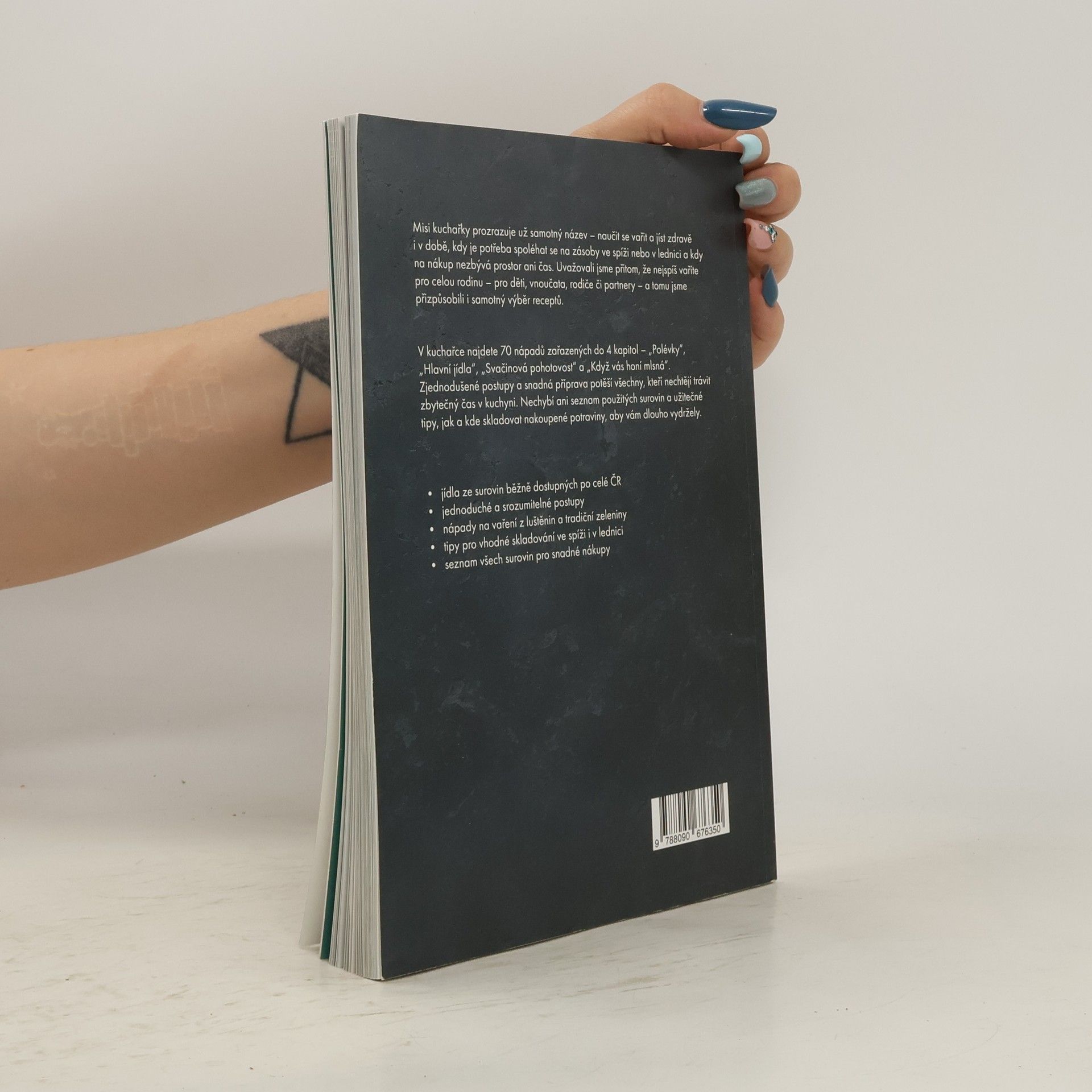 Přišli jste domů z práce a nechce se vám na nákup? Právě vám volal někdo z rodiny, že se neplánovaně staví na sobotní oběd a vy byste jim rádi uvařili domácí stravu? Mise této kuchařky je jasná – naučit se vařit a jíst zdravě i v době, kdy je potřeba spoléhat se na zásoby ve spíži nebo lednici a na nákup prostě není prostor ani čas. Dali jsme dohromady 70 nápadů na opravdová jídla, která v kuchyni připravíte během chvíle a při vaření vám můžou pomáhat i děti. V kuchařce najdete 4 kategorie – polévky, hlavní jídla, svačinovou pohotovost a recepty pro chvíle, kdy vás honí mlsná. Tentokrát jsme si posvítili na luštěniny, zdravější varianty dětských jídel, ryby, maso a také lehčí bezmasé varianty tradičních receptů. Kromě toho vás naučíme upéct nehnětený špaldový chléb, bulky k snídani nebo vyrobit kakaovo-tvarohový dezert ze 4 surovin.