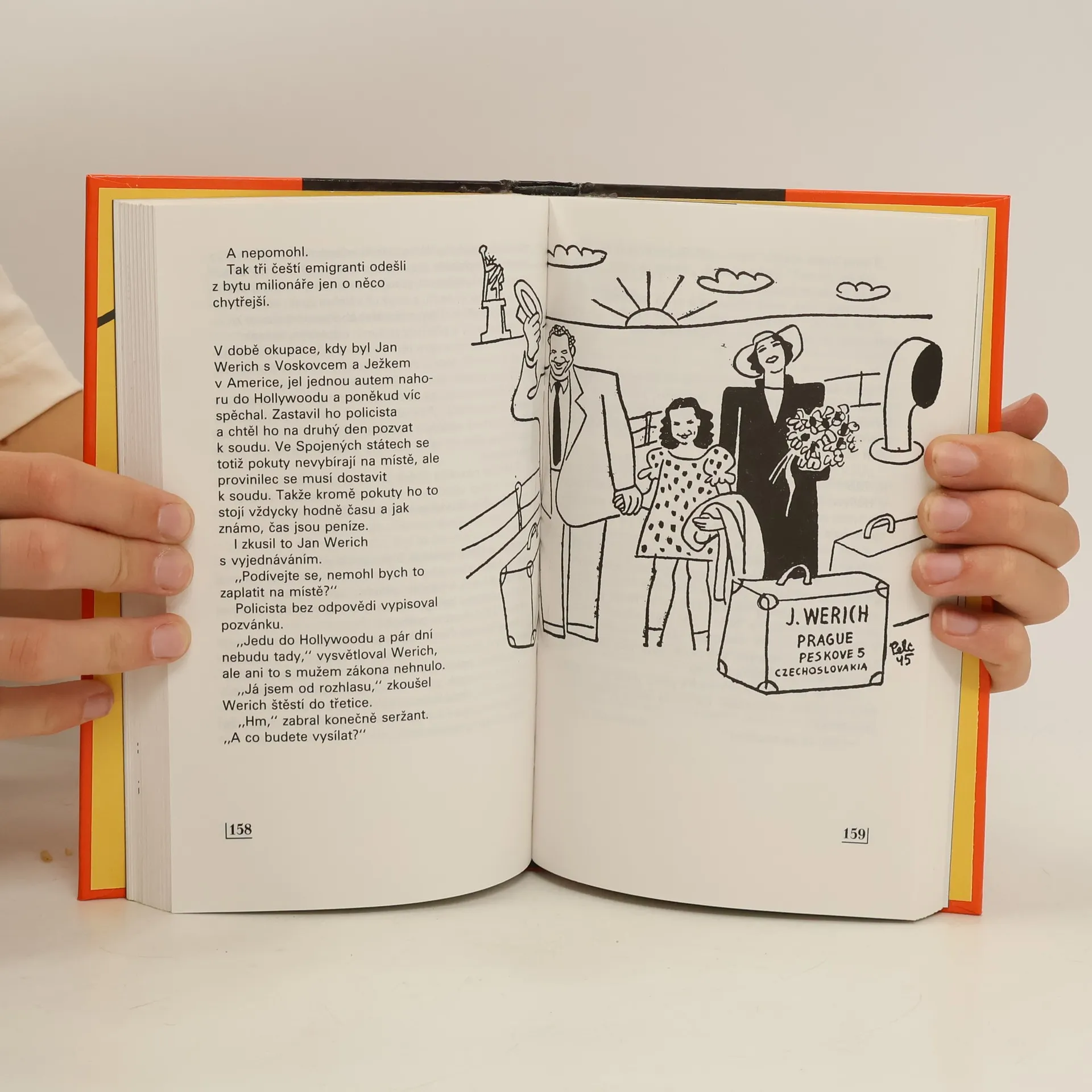 Snad nám čtenář odpustí, když jedno z těch Werichových nesmrtelných uřeknutí prozradíme hned na obálce. Při premiérách her V + W v Osvobozeném divadle dostávali autoři a herci při konečném klanění nejen obligátní kytice a věnce, ale mnohdy i jiné projevy uznání. Například při premiéře hry Kat a blázen podal někdo autorům na forbínu dvě láhve tříhvězdičkového koňaku. Werich se naklonil přes rampu, popadl láhve, a už se s nimi hnal do šatny. Jenže co čert nechtěl, na schodišti jedna láhev třeskla o zábradlí, a to se ví, hned vzala za své. Werich nad tím jen zalkal: „Chudák Voskovec, ten má ale smůlu!" Knížka neblednoucích úsměvů a životního moudra našeho nejuctívanějšího klauna se nám zachovala alespoň v náznaku díky sběratelské péči jednoho z jeho ctitelů. Drobty Werichova jiskrného intelektu, poztrácené v hovorech s přáteli, po novinách, v zákulisí, v šatnách, při zájezdech a během cestování, ve vzpomínkách pamětníků, vyřčené jen tak bokem na forbíně, defilují tu náhle znovu objevené, aby nám rozjasnily všední den. Ještě na nás dýchne atmosféra dnes už legendárního Osvobozeného divadla, jiskry dialogů těch, kteří už nejsou mezi námi, ale žijí v nás. A abychom si milovanou tvář připomněli až do poslední vrásky úsměvu, o to se zasloužily kresby a karikatury nejlepších kreslířů té doby, A. Hoffmeistra, A. Pelce, F. Bidla, J. Trnky, J. Kándla, L. Rady a řady dalších.