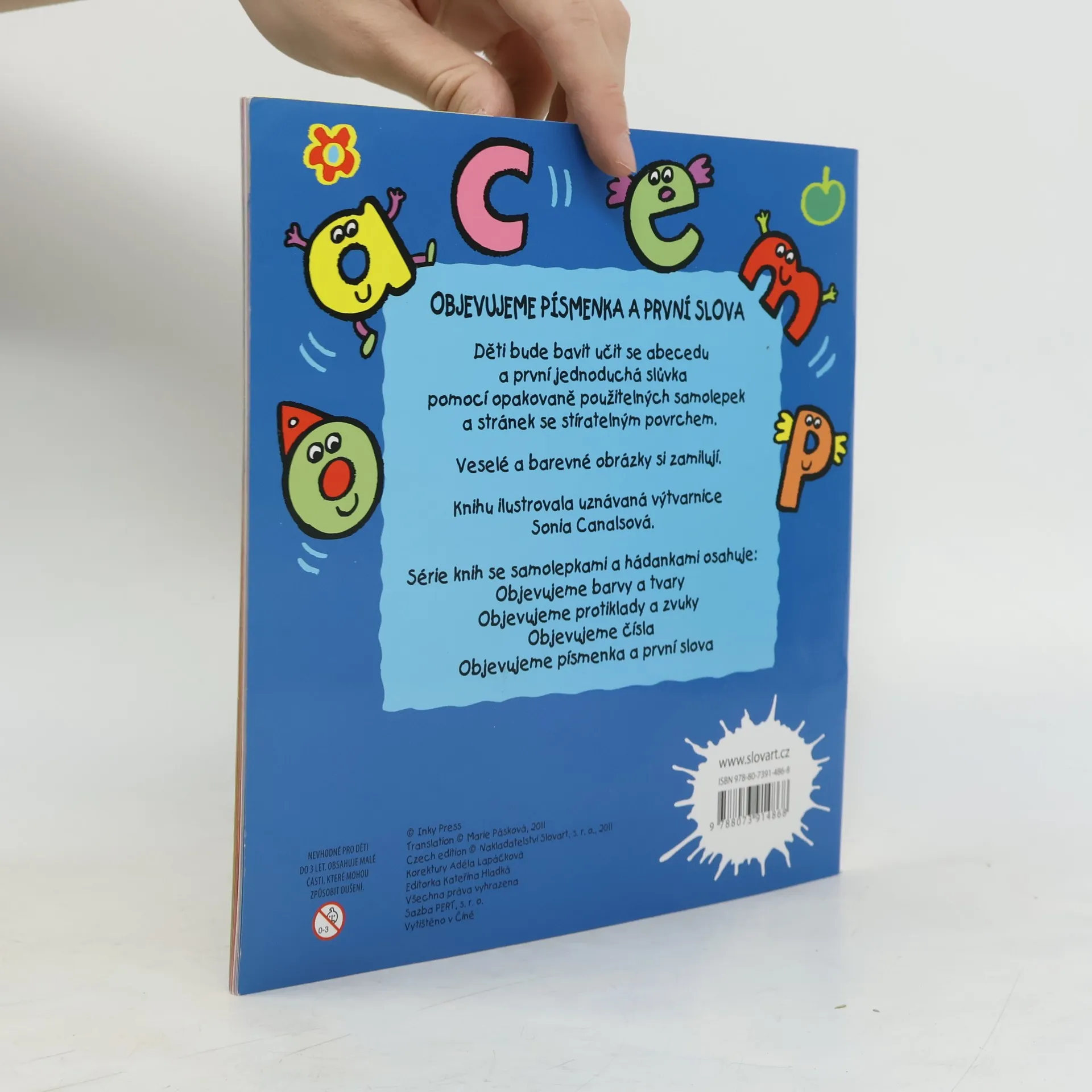 Knížka s omyvatelným povrchem stránek, do níž mohou děti opakovaně psát.Pomocí důmyslných hádanek, zábavných úkolů, schovávaček a samolepek si rychle osvojí abecedu a první psaná slova.