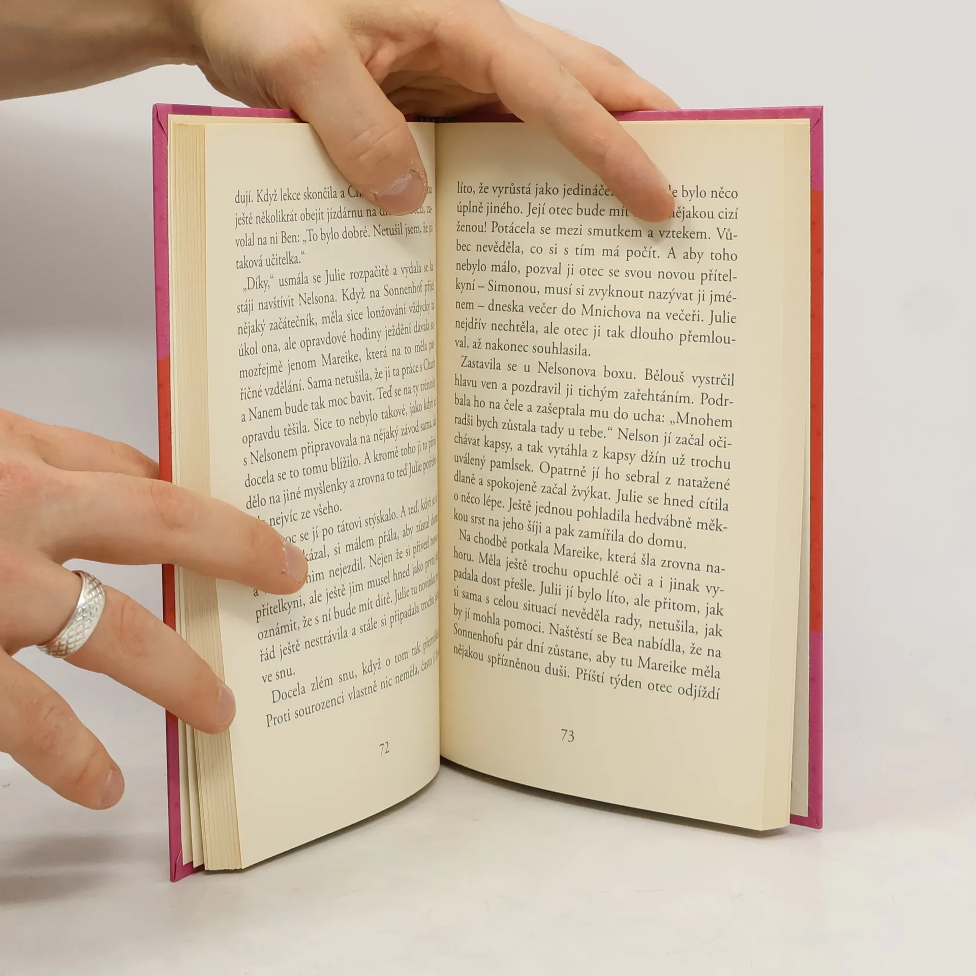 Všechno to začíná úplně nevinně: Julie přemluví Charly, že už je načase, aby se taky zúčastnila nějakých závodů. Jenže plány jim brzy zkříží zranění. A zrovna před prázdninami! Mezi táborníky jsou tentokrát i dvě k nerozeznání podobné sestry a jedna z nich si mezi všemi koňmi vyhlédne zrovna vůdce haflingů, takže problémy na sebe nenechají dlouho čekat. A kromě prázdninových hostů se na Sonnenhofu objeví další návštěva, kterou tu Julie rozhodně nečekala - její otec. A nepřijede sám.