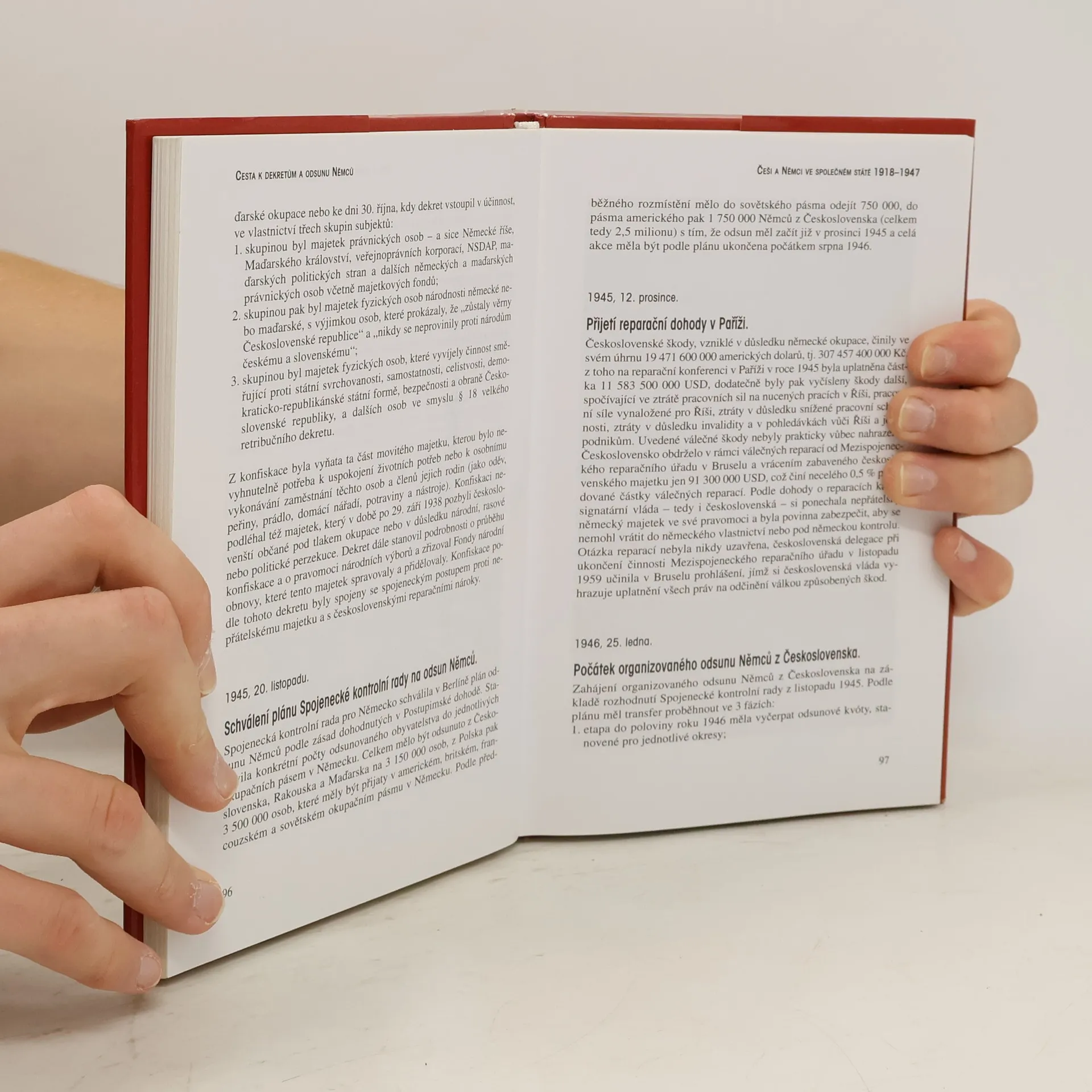 Historické události i právní a politické akty, které v létech 1918-1947 ovlivnily vztahy mezi Čechy a sudetskými Němci či byly důsledkem jejich negativního vývoje. Datová příručka. Chronologický přehled. Výmluvná fakta, čísla a dokumenty. Příručka zahrnuje období od vzniku samostatného československého státu po ukončení hlavní vlny organizovaného odsunu. Funkci úvodu plní stručný historický exkurz věnovaný vývoji česko-německých vztahů ve 2. pol. 19. stol. Jedná se o nekomentovaná fakta. Dokumenty v příloze ilustrují celé uvedené období. V závěru je uveřejněno stanovisko Sdružení historiků ČR - Historikové proti znásilňování dějin.