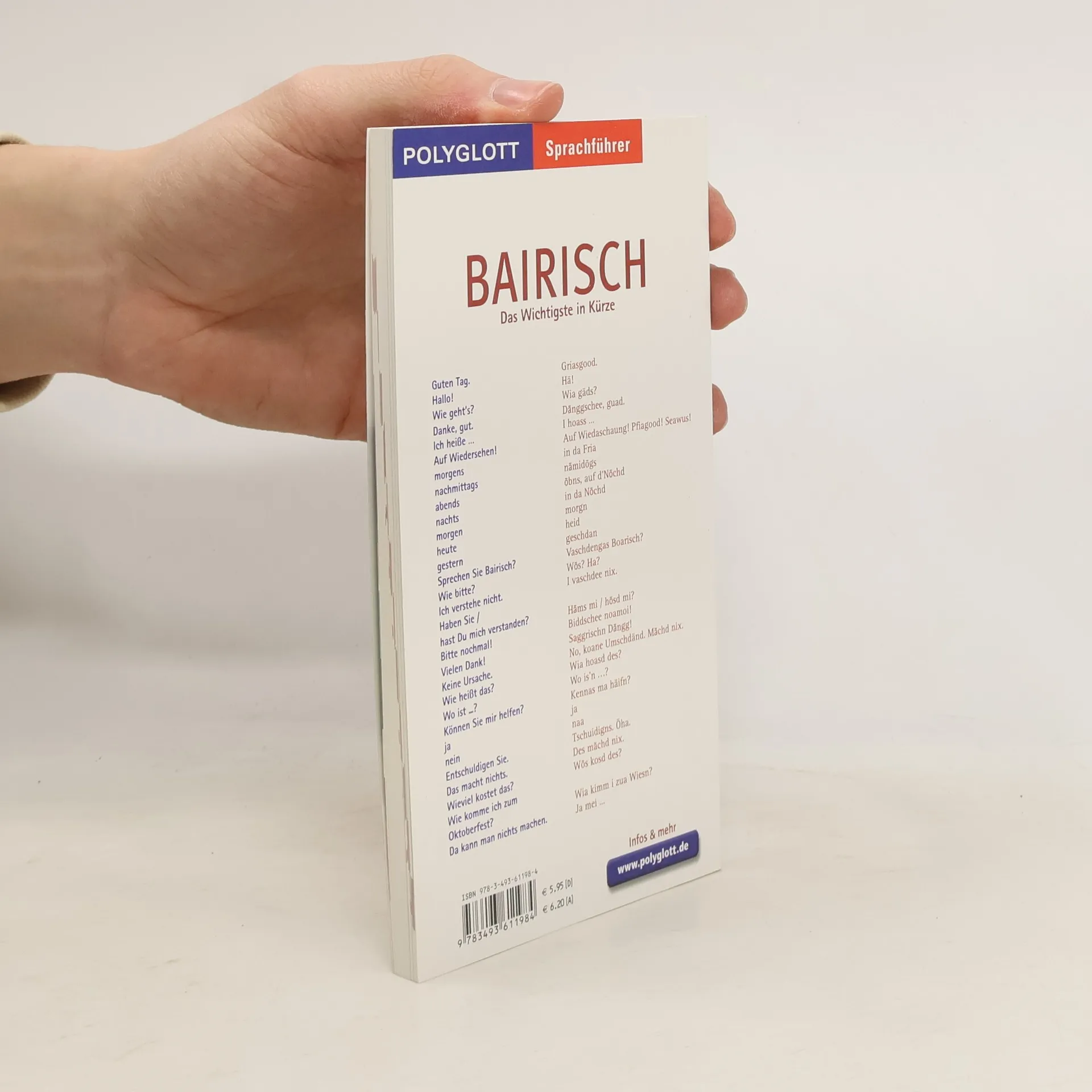 Der Polyglott Sprachführer Bairisch mit seinem einzigartigen farbigen Bildwörterbuch bietet Ihnen die Möglichkeit, sich anhand von bewusst einfach gehaltenen Redewendungen rasch zu verständigen – denn komplizierte, lange Sätze sind ohnehin die Sache des Altbayern nicht.
