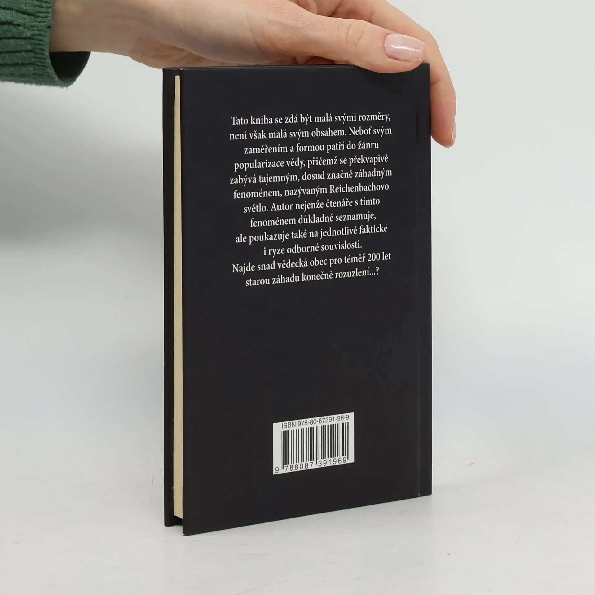 Tato kniha se zdá být malá svými rozměry, není však malá svým obsahem. Neboť svým zaměřením a formou patří do žánru popularizace vědy, přičemž se překvapivě zabývá tajemným, dosud značně záhadným fenoménem, nazývaným Reichenbachovo světlo. Autor nejenže čtenáře s tímto fenoménem důkladně seznamuje, ale poukazuje také na jednotlivé faktické i ryze odborné souvislosti. Najde vědecká obec pro téměř 200 let starou záhadu rozuzlení...?