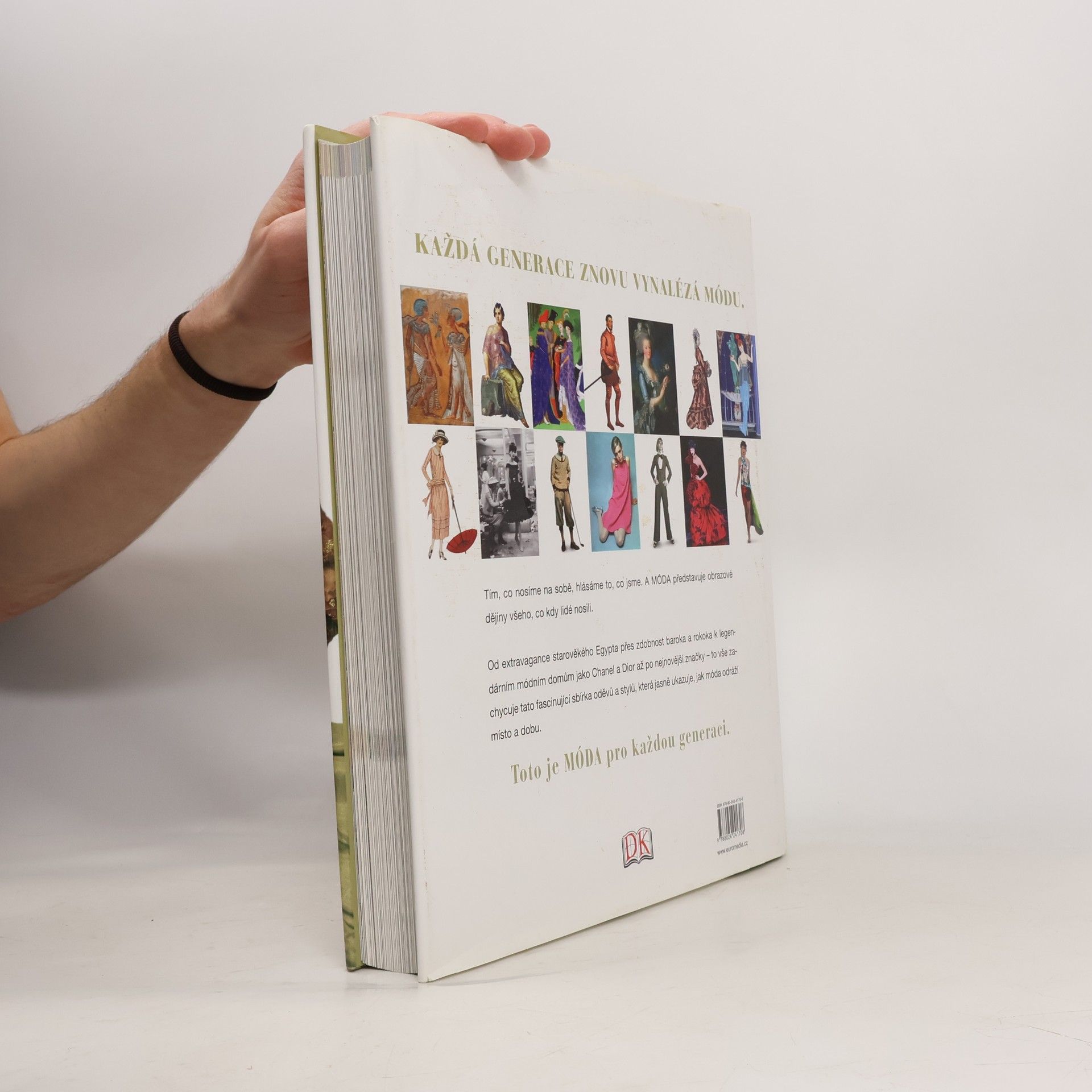 Fascinující obrazový průvodce dějinami světové módy, od starověku po současnost. Od výstředních rób starého Egypta přes renesanci, baroko a proslulé módní domy jako Chanel či Dior po nejmodernější světové značky nabízí tato encyklopedie vyčerpávající přehled všeho, co kdy lidé nosili. Pozoruhodná publikace zve na výpravu do minulosti a prostřednictvím vývoje odívání poskytuje plastický obraz místa a doby.