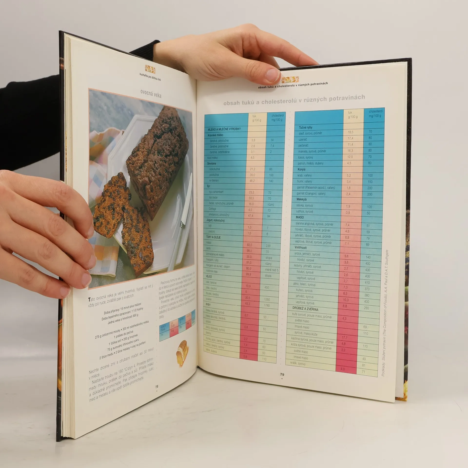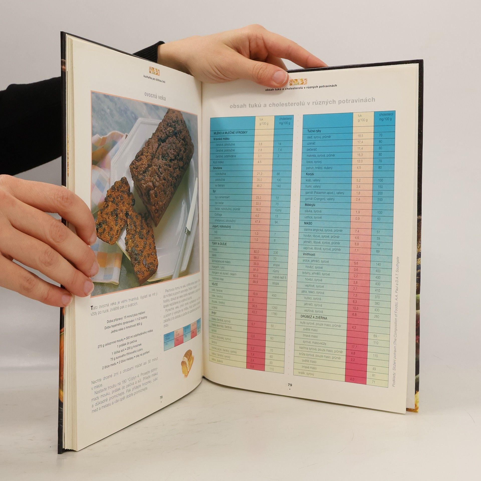 Vaření téměř bez tuků a cholesterolu, recepty na chutné pokrmy od zdravé snídaně až po výborná hlavní jídla a dezerty, tištěno na křídovém papíře, doplněno barevnými fotografiemi.