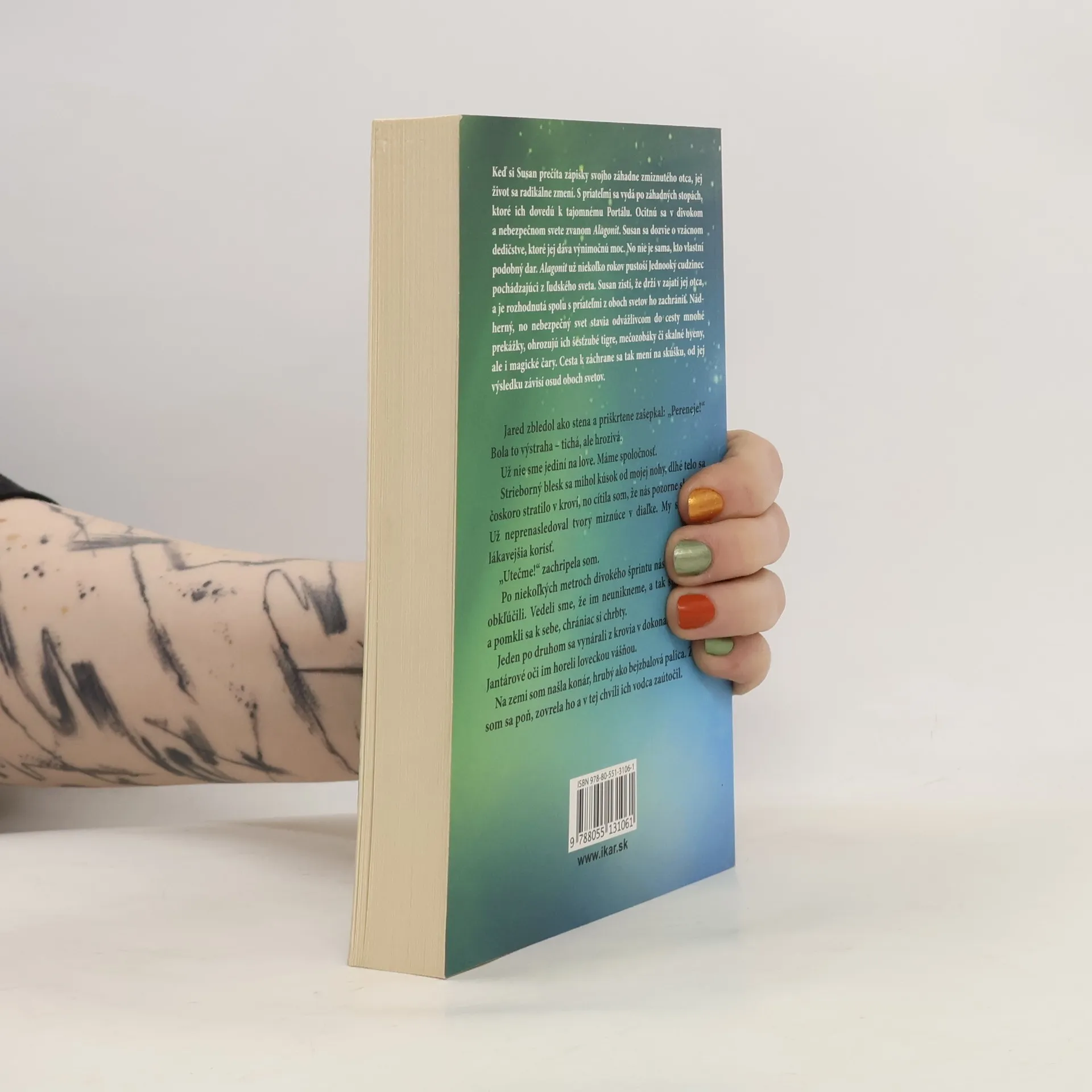 Keď si Susan prečíta zápisky svojho záhadne zmiznutého otca, jej život sa radikálne zmení. S priateľmi sa vydá po záhadných stopách, ktoré ich dovedú k tajomnému Portálu. Ocitnú sa v divokom a nebezpečnom svete zvanom Alagonit. Susan sa dozvie o vzácnom dedičstve, ktoré jej dáva výnimočnú moc. No nie je sama, kto vlastní podobný dar. Alagonit už niekoľko rokov pustoší Jednooký cudzinec, pochádzajúci z ľudského sveta. Susan zistí, že drží v zajatí jej otca, a je rozhodnutá spolu s priateľmi z oboch svetov ho zachrániť. Nádherný, no nebezpečný svet stavia odvážlivcom do cesty mnohé prekážky, ohrozujú ich šabľozubé tigre, mečozobáky či skalné hyeny, ale i magické čary. Cesta k záchrane sa tak mení na skúšku, od jej výsledku závisí osud oboch svetov.