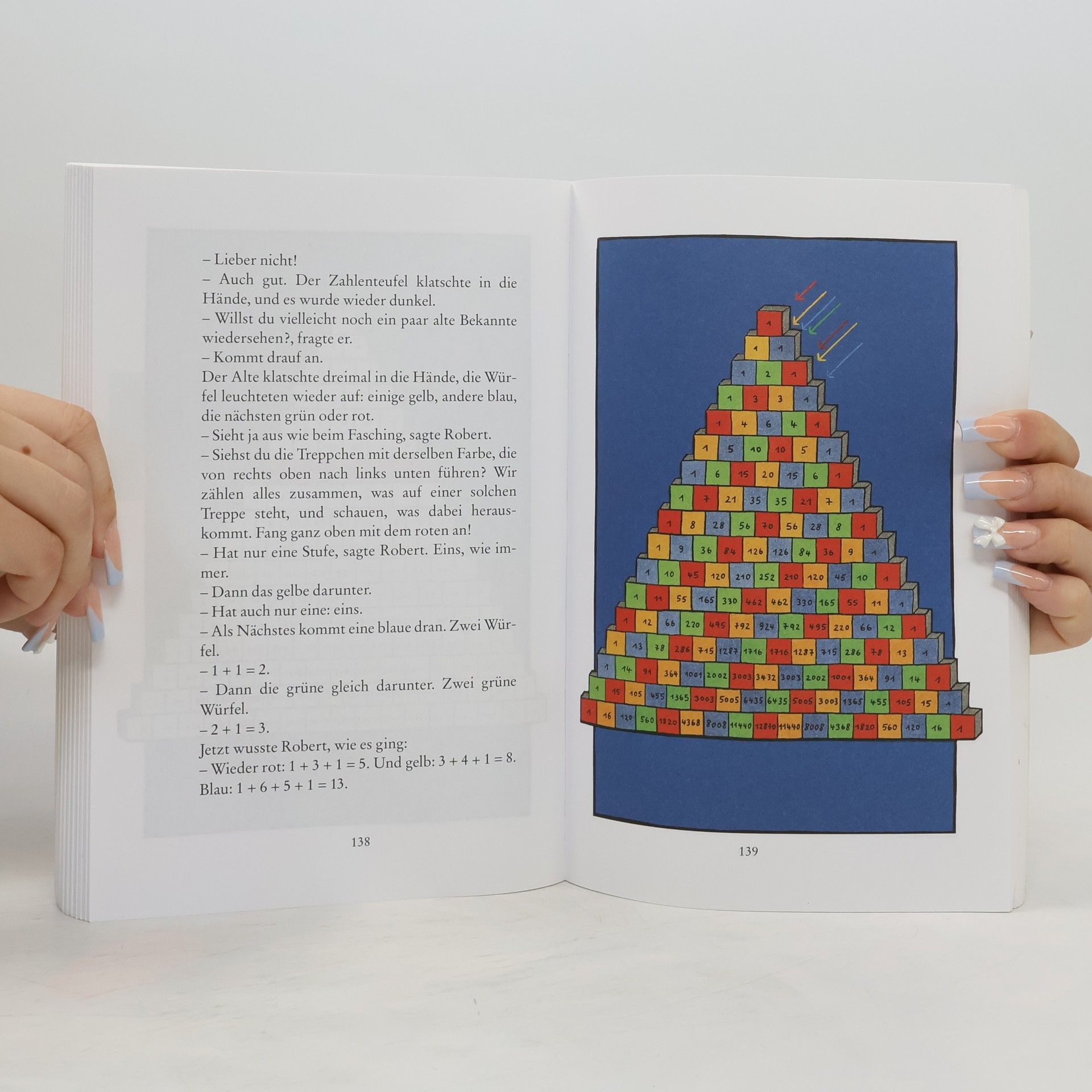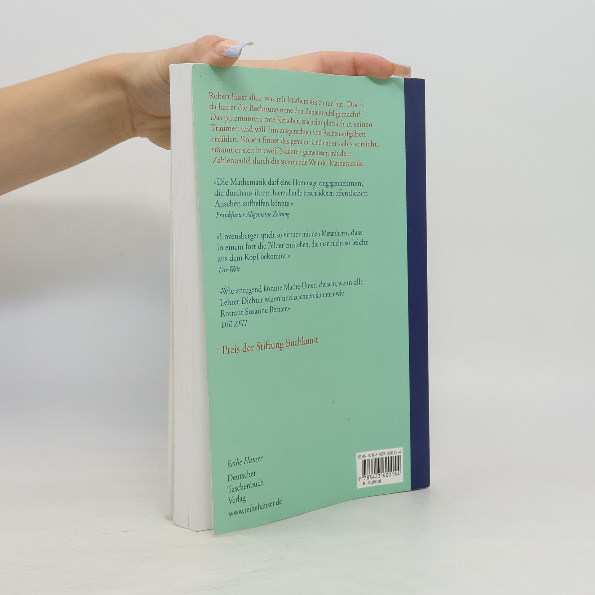 Robert hat das Träumen satt. Weil ihm die unheimlichsten Dinge im Traum passieren, beschließt er, es nicht mehr zu tun. Doch da hat er die Rechnung ohne den Zahlenteufel gemacht! Plötzlich ist er da, wirbelt mit seinem geheimnisvollen Stock herum und zaubert aus ihm ganze Zahlenfolgen. In zwölf Nächten erzählt er Robert von hopsenden Zahlen, wie man Rettiche zieht und daß es auch eingebildete Zahlen gibt. Wer bei so vielen Rechenaufgaben auf die Mathematik Lust bekommt, auf den wartet zum Ende jedes Kapitels eine kleine Denkaufgabe.›Der Zahlenteufel‹ wurde ausgezeichnet mit dem ›Luchs‹ und war eines der ›7 besten Bücher für junge Leser‹.