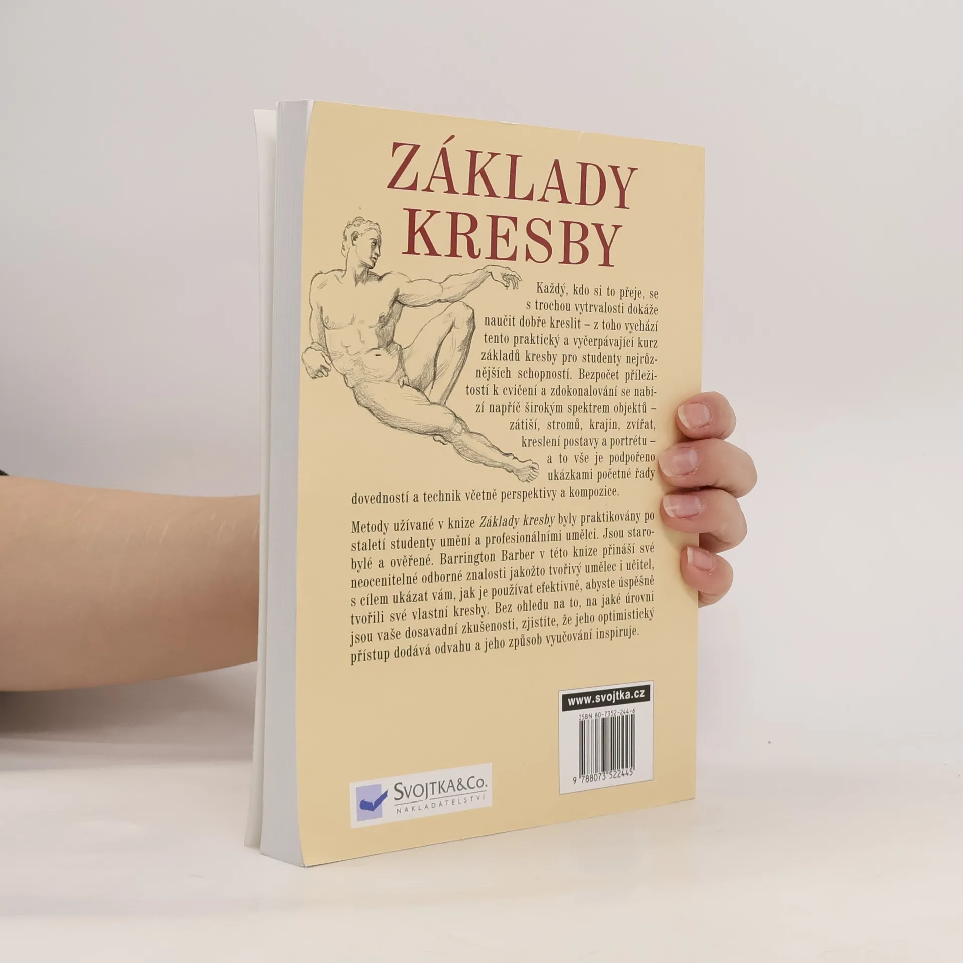 Kompletní kurz pro výtvarníky. Každý, kdo si to přeje, se s trochou vytrvalosti dokáže naučit dobře kreslit - z toho vychází tento praktický a vyčerpávající kurz základů kresby pro studenty nejrůznějších schopností. Bezpočet příležitostí k cvičení a zdokonalování se nabízí napříč širokým spektrem objektů zátiší, stromů, krajin, zvířat, kreslení postavy a portrétu - a to vše je podpořeno ukázkami početné řady dovedností a technik včetně perspektivy a kompozice. Metody užívané v knize Základy kresby byly praktikovány po staletí studenty umění a profesionálními umělci. Jsou staro bylé a ověřené. Barrington Barber v této knize přináší své neocenitelné odborné znalosti jakožto tvořivý umělec i učitel, s cílem ukázat vám, jak je používat efektivně, abyste úspěšně tvořili své vlastní kresby. Bez ohledu na to, na jaké úrovni jsou vaše dosavadní zkušenosti, zjistíte, že jeho optimistický přístup dodává odvahu a jeho způsob vyučování inspiruje.