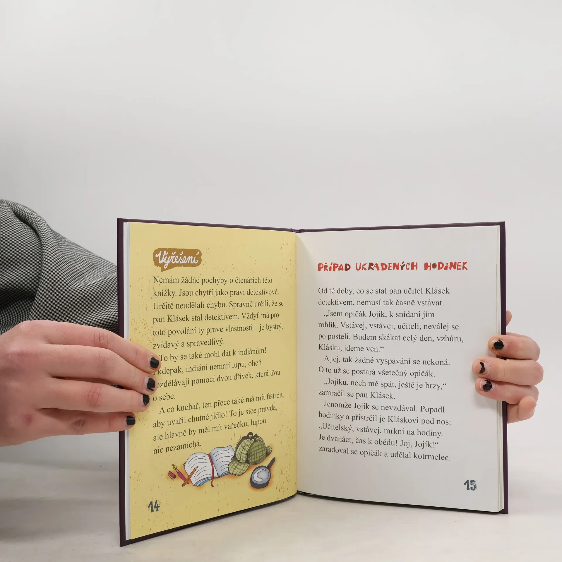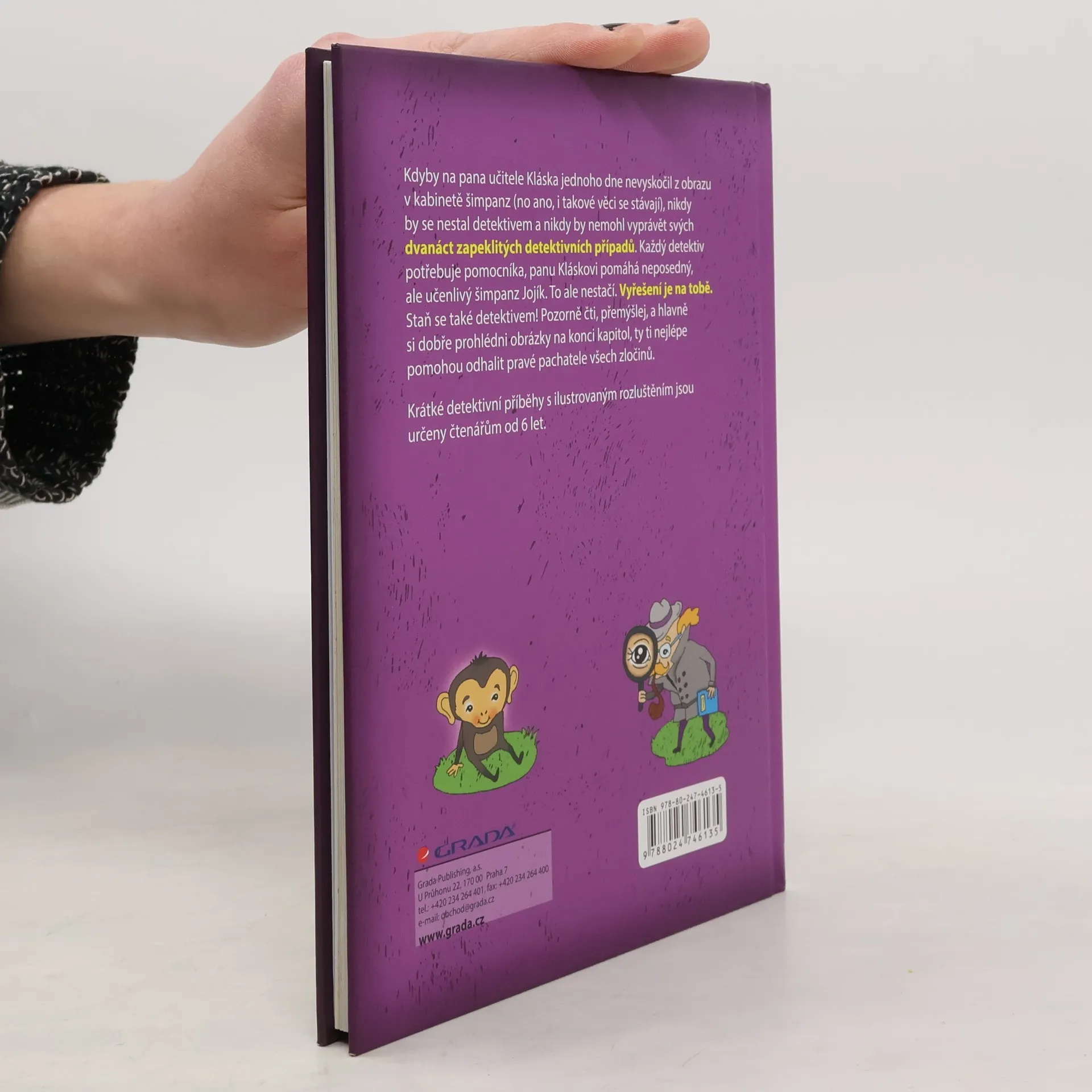 Krátké detektivní příběhy s ilustrovaným rozluštěním pro čtenáře od šesti let. Kniha plná originálních ilustrací rozvíjí logické myšlení, pozornost a čtenářské dovednosti.Čti, prohlížej si a pátrej! Detektiv Klásek a opičák Jojík potřebují tvůj postřeh a bystrou hlavu. Bez tebe zločince nedopadnou.