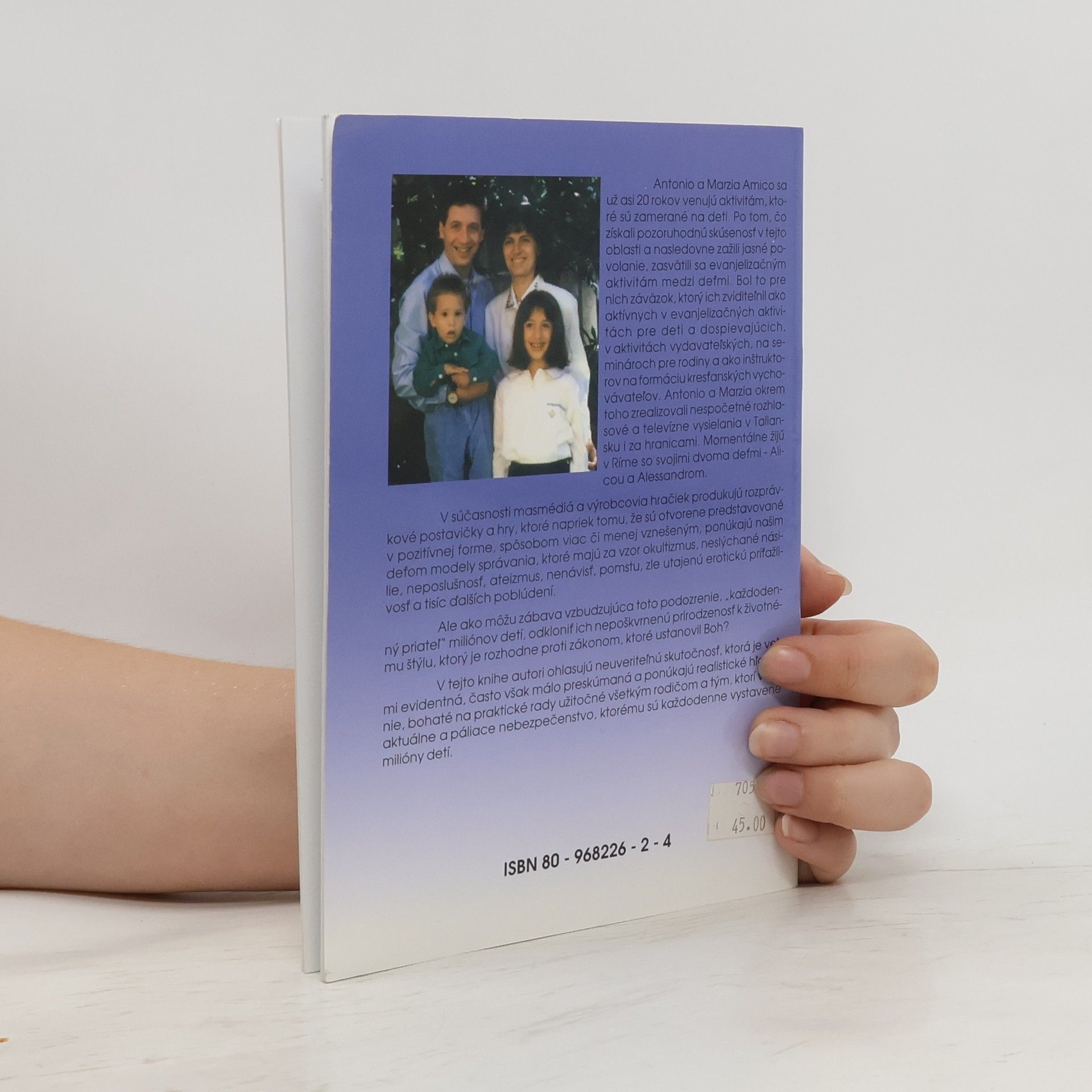 V súčasnosti masmédiá a výrobcovia hračiek produkujú rozprávkové postavičky a hry, ktoré napriek tomu, že sú otvorene predstavované v pozitívnej forme, spôsobom viac či menej vznešeným, ponúkajú našim deťom modely správania, ktoré majú za vzor okultizmus, neslýchané násilie, neposlušnosť, ateizmus, nenávisť, pomstu, zle utajenú erotickú príťažlivosť a tisíc ďalších poblúdení. Ale ako môže zábava vzbudzujúca toto podozrenie, „každodenný priateľ” miliónov detí, odkloniť ich nepoškvrnenú prirodzenosť k životnému štýlu, ktorý je rozhodne proti zákonom, ktoré ustanovil Boh? V tejto knihe autori ohlasujú neuveriteľnú skutočnosť, ktorá je veľmi evidentná, často však málo preskúmaná a ponúkajú realistické hľadanie, bohaté na praktické rady užitočné všetkým rodičom a tým, ktorí vidia aktuálne a páliace nebezpečenstvo, ktorému sú každodenne vystavené milióny detí. Prvé vydanie